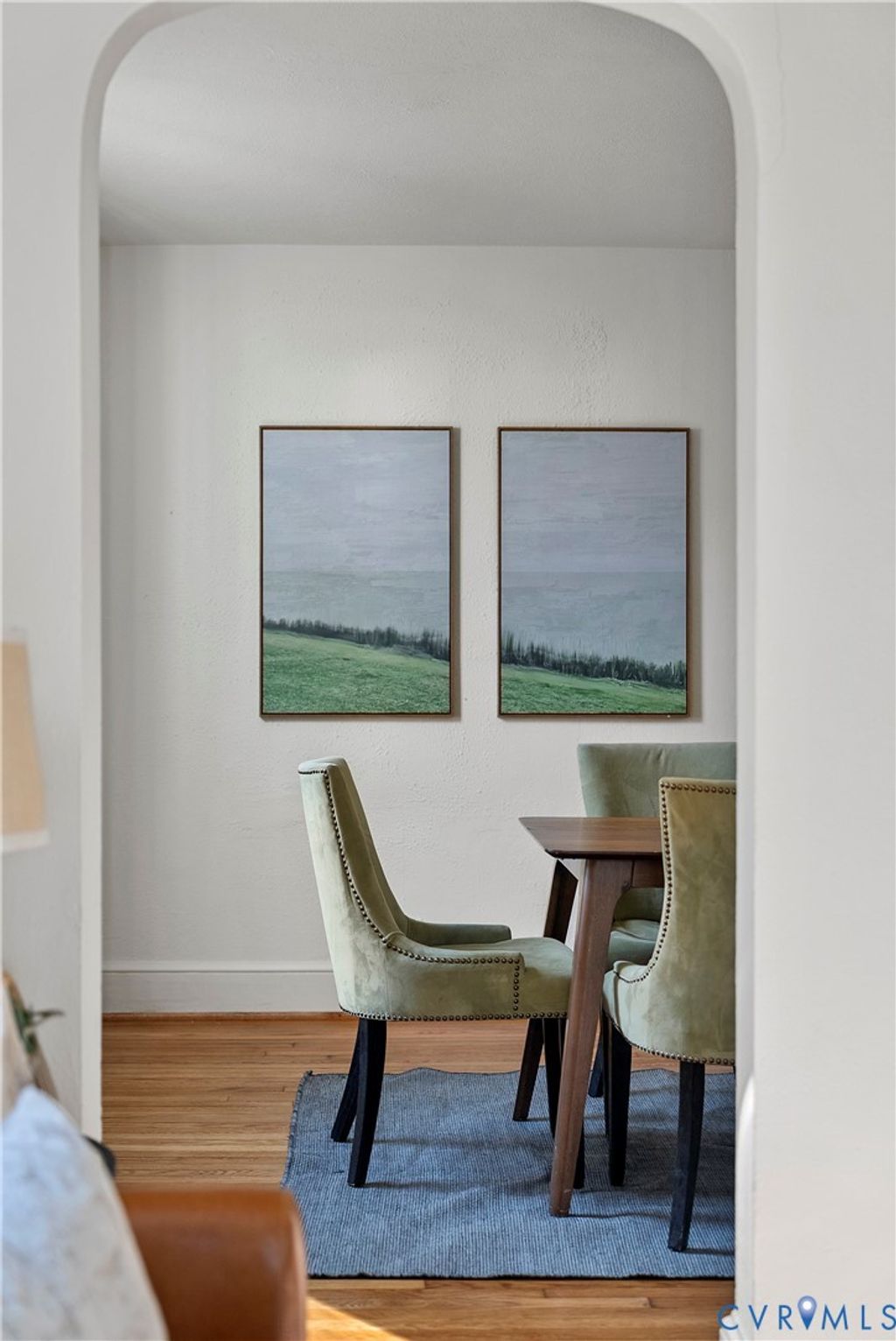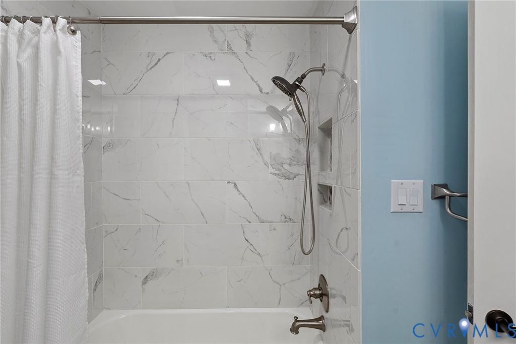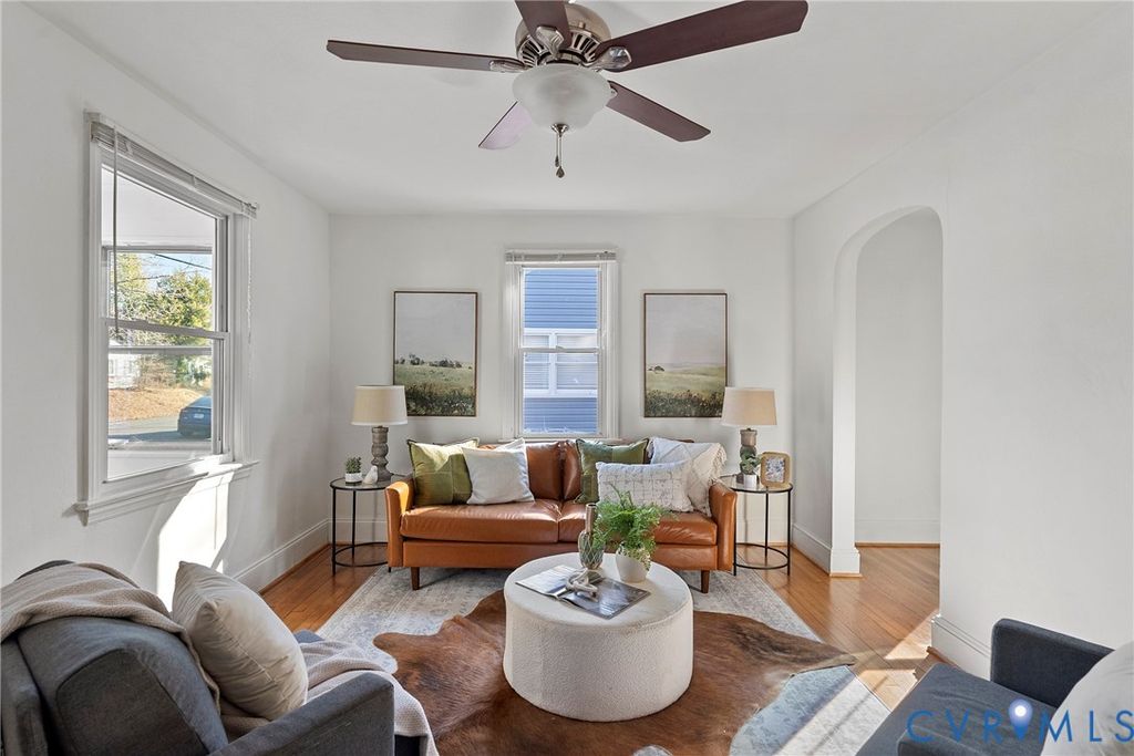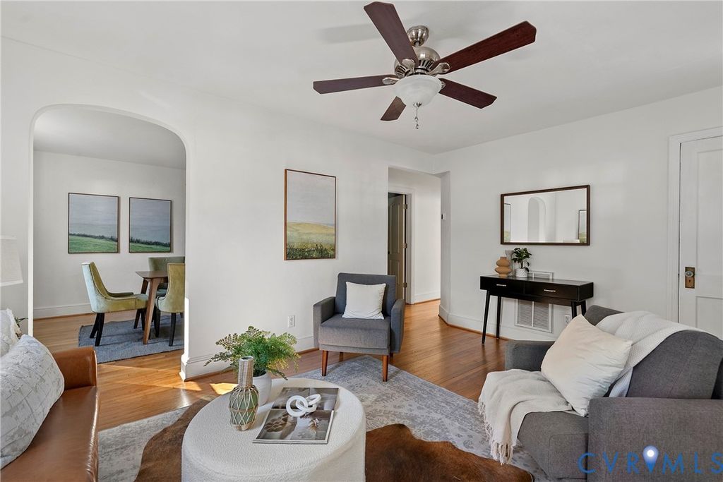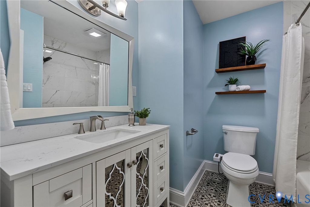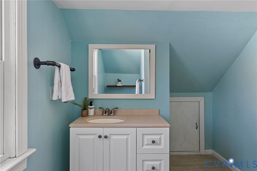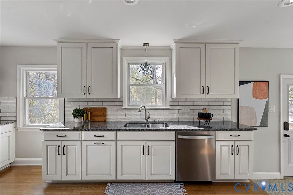 This recently renovated Cape Cod is Tucked away on a quiet street in Sandston boasting fresh paint, newly refinished floors, an awesomely sized rear deck overlooking the rear yard backing up to woods for great privacy and outdoor living, private driveway with off street parking, and featuring 3 bedrooms, 2 full baths and 1,426 SF! Walk into an open and bright living room with oak hardwoods, ceiling fan, arched openings lead you into the dining room. Spacious dining room also features oak hardwoods, chandelier and opens into the kitchen. Graciously sized kitchen featuring oak hardwood floors, classic white shaker style cabinets with soft close doors and drawers, granite counter tops, white subway tile back splash, open shelving, under mount lighting, recessed lights and a step down eat in area! Open the back door off the eat in area and walk out onto the massive rear deck overlooking the picturesque back yard with mature trees and lots of privacy. Renovated hall bath features an oversized vanity with quartz counter tops and a large cast iron tub with tile to the ceiling and 2 niches! Nice sized bedrooms on the 1st floor offer hardwoods and overhead lighting with good closet space. Walk up to the private primary suite featuring a nice sized bedroom area LVT floors, larger closet and recessed lighting! Primary ensuite boasts a walk in tile shower with tile to the ceiling, open shelving and nice sized vanity! Also features a nice sized laundry room with side by side washer, dryer with plenty of extra storage. Stop by and see this one for yourself!