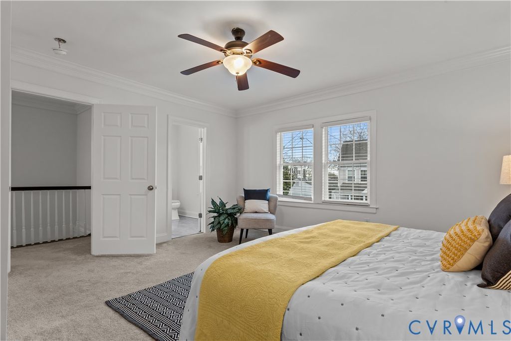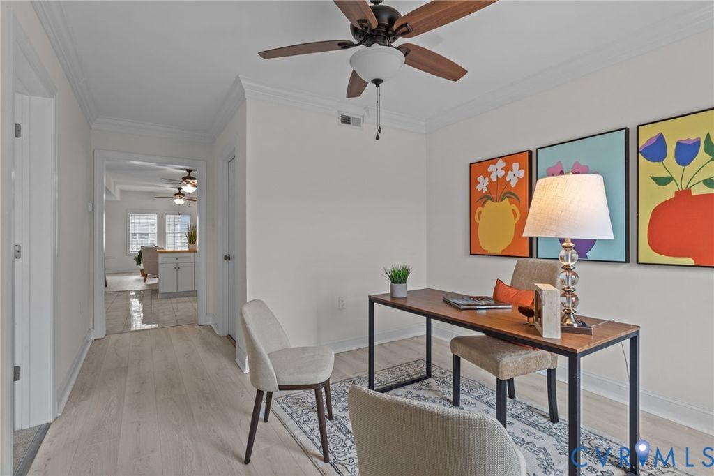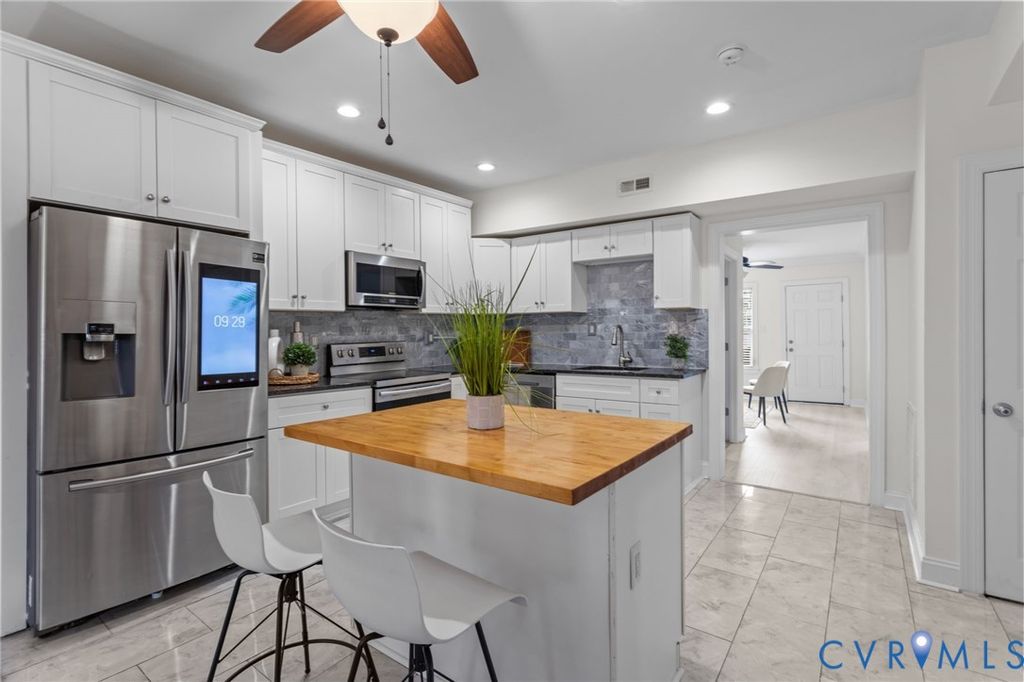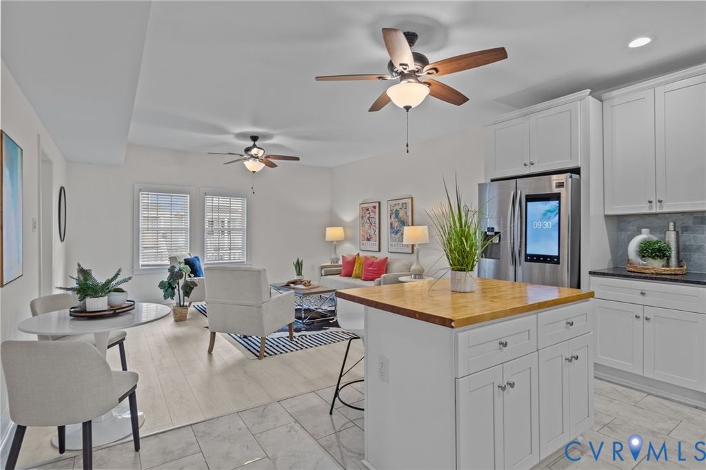 Nestled on a quiet street in RVA's historic Church Hill, 1216 N 30th St offers an impressive 2,323SF of thoughtfully updated living space with 4 spacious bedrooms, a dedicated home office or 5th bedroom, and 3 full bathrooms "” a rare combination in this sought-after neighborhood. From the moment you arrive, the expansive front porch w/ updated composite columns and railing set the tone for the low-maintenance lifestyle found throughout. Inside, an oversized foyer welcomes you with elegant chair rail trim and crown molding, leading into the main living area w/ LVP flooring and abundant natural light. The living room flows into the stylish, on-trend kitchen, featuring soft-close dovetail cabinetry, granite countertops, tile backsplash, recessed lighting, a large island and SS appliances "” including a Samsung French-door Smart refrigerator. Just beyond the kitchen, you'll find a full-size laundry room with washer and dryer included, followed by a flexible first-floor office or dining space w/ access to the rear deck. A true standout feature is the first-floor primary suite offering plush carpet, recessed lighting, a ceiling fan, generous walk-in closet, an en-suite bathroom w/ granite-top vanity and walk-in shower. Upstairs, a second primary suite sits at the front of the home w/ crown molding, ample closet space and a private bath w/ tile floors, walk-in shower and quartz-top vanity. Down the hall is the office/game room/5th bedroom "” and the third full bathroom, complete with a large vanity, tile floors, and a tub/shower w/ tile surround and glass door. Two additional rear bedrooms are generously sized and feature plush carpet, sizable closets and ceiling fan/lights. Out back, enjoy a large deck overlooking a massive, fully fenced backyard that's perfect for entertaining "” plus the added convenience of off-street parking. All of this, just blocks from Soul N' Vinegar, Taco Vegana and The Market at 25th. This is Church Hill living at its best "” the perfect place to call home!