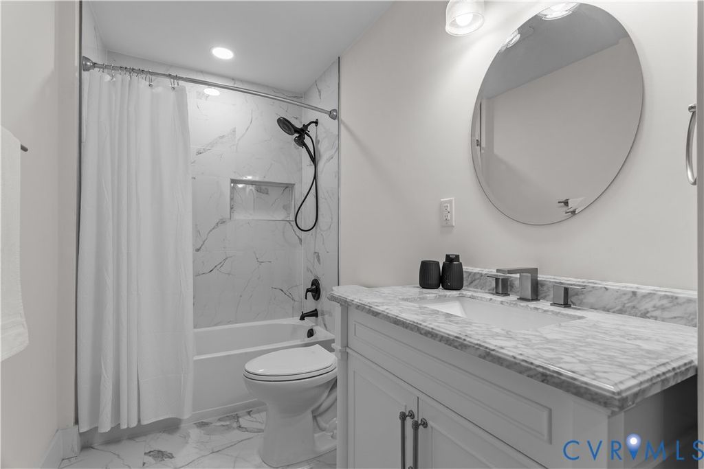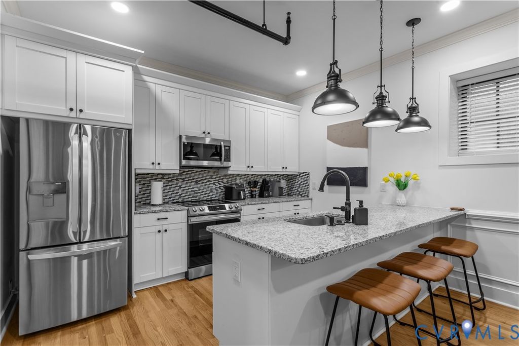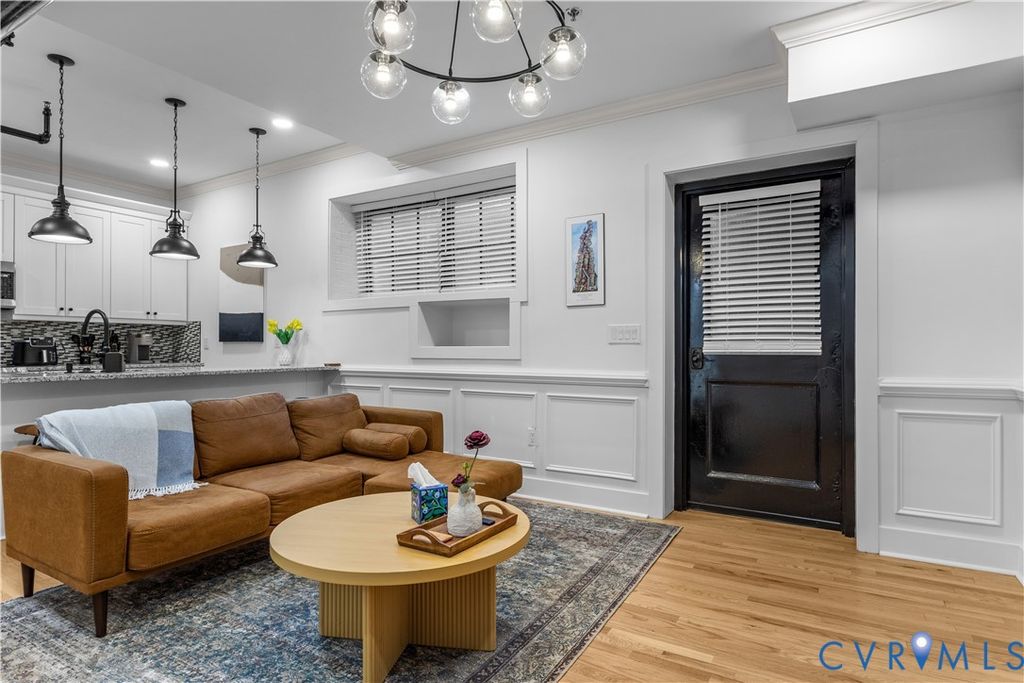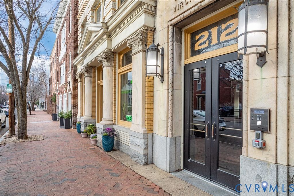 Once home to Mechanics Savings Bank and later Southern Aid Insurance Company around the turn of the 20th century, 212 E Clay St is a special building filled with history and expert craftsmanship. And that craftsmanship and attention to detail spills over into unit B1! Stroll downstairs where you'll find an exceptional renovation that's unlike any condo you've likely seen in RVA. Completed just a few years ago, you'll enjoy new hardwood floors throughout the living room, kitchen, and bedroom. Inside you'll note the custom trim package including crown molding that runs the length of the main living area and into the kitchen. And there you'll enjoy 42" upper cabinets, soft-close/dovetail features, a huge peninsula with pendant lights, granite counters, tile backsplash, and SS appliances! The bedroom sits just off the kitchen and offers picture and chair rail trim and more crown molding. Recessed lighting, a double closet and in-bedroom laundry closet complete the bedroom. A stunning bathroom sits just steps away with tile floors, a marble top vanity, on-trend lighting, and a tub/shower with tile surround and niche. There are two entrances - one from inside the building and one from the rear parking area. You're across the street from the Greater Richmond Convention Center and steps from ML Steak Modern Chophouse, Lillie Pearl, Kogi, and numerous other restaurants and shops!
