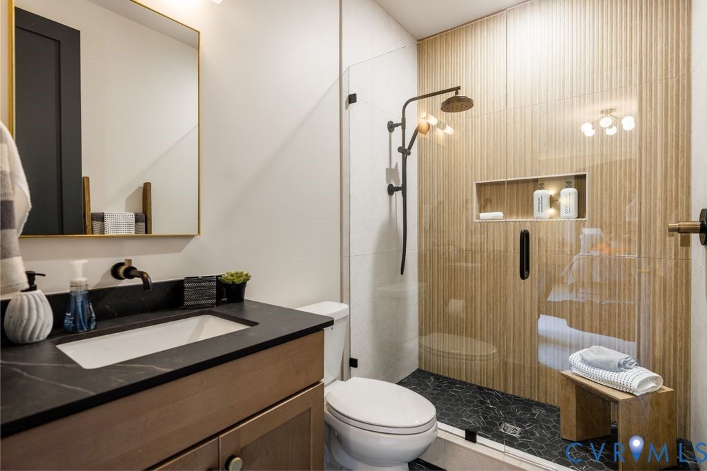 Welcome to the "Kaia" by Clay Street Builders, HBAR's Builder of the Year Recipient! This gorgeous custom home is located in the newest section of the Award Winning Summer Lake community, which offers a luxury lifestyle to it's residents with enriched amenities. The Kaia offers a Modern elevation with Hardiplank, Copper Gutters & Gold Fixtures. The Dramatic 2 story foyer is breathtaking with 12 X 12 Porcelain tile floors, Walnut Veneer Walls & exquisite light fixture. Step into the Lounge which has White Oak Beams, color drenched walls & pocket doors, this space can be your next home-office, Bourbon Room or Game Space. The Family Room has custom woodworking, a Porcelain raised hearth Vapor Fireplace & Over-sized Sliders. There are direct views into the FABULOUS Kitchen with a mix neutrals & texture, there are Walnut cabinets, elevated finishes, porcelain counter-tops, marble back-splash & Thermador Appliances, along with a Custom Serving Station & Walk-In Pantry with a Pocket Door. There is a 1st floor Guest Suite & Ensuite with a Reeded Glass Shower. The Primary Suite is spacious with Closets designed By Inspired Closets, porcelain wrapped vanities, soaking tub & direct entry into your Laundry Room with stackable washer/dryer & custom cabinetry. There are 3 additional Bedrooms, all with WIC's & 2 Full Baths to complete the 2nd floor. The 3rd floor bonus room & full bath, can be a 6th bedroom, home-gym or flex space. The Outdoor Living Space is MAGNIFICENT, there is a 3 season porch with Blue Stone Floors & EZ-BREEZE windows so it's truly an extension of your living space, along with a Stamped Concrete Patio & Decorative Privacy Screening! You will love the attention to detail, the true custom finishes & the functionality of this floor-plan! Be prepared to be WOWED! (Grange Hall, Deep Creek Middle & Cosby High School)