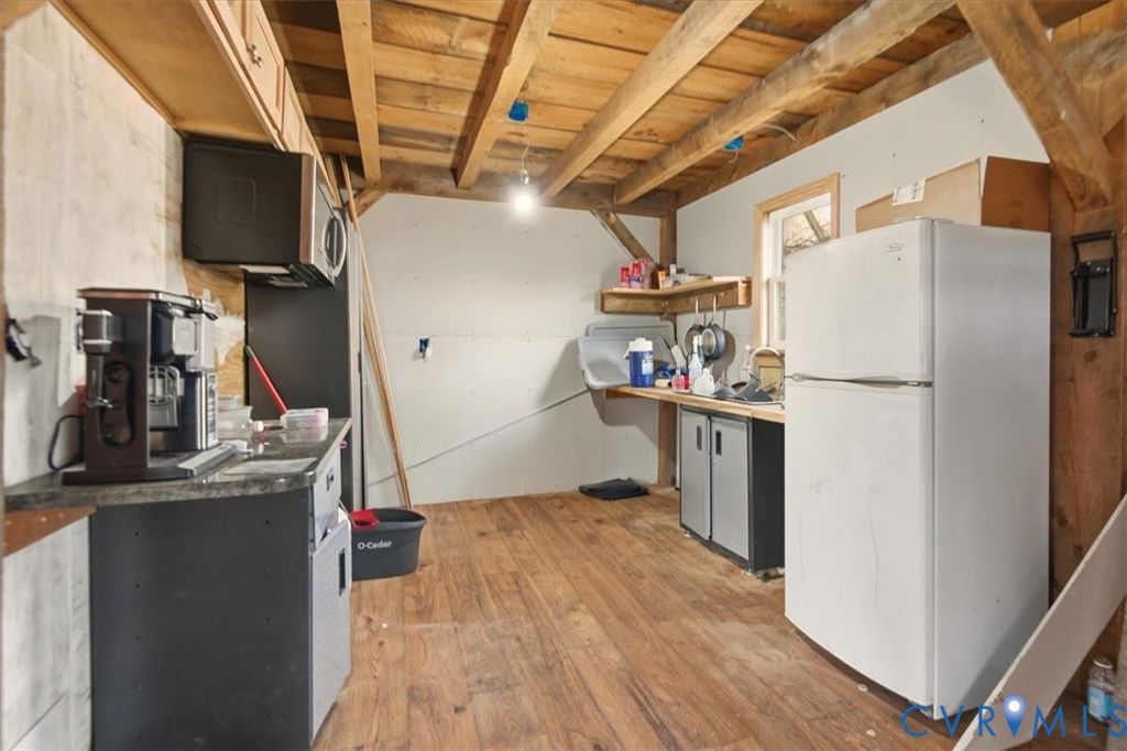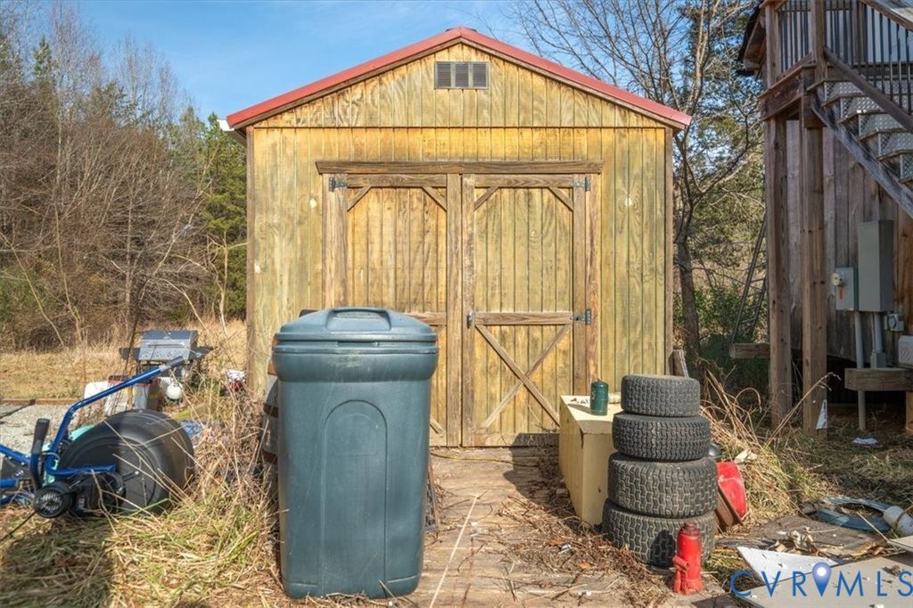 LAND - 4.4 acres of land in a prime Powhatan location with a driveway and cleared area. The property has a well, septic and power. Included on the land is a rustic unfinished structure and a storage shed. This rustic cottage structure is being sold AS IS, as it is an unfinished kit house. There is lots of potential for the right buyer, with a living area, kitchen area and heated and cooled with two mini-split units. There is also an electric water heater in place along with a partially finished bathroom. The upstairs is accessible by the exterior staircase. The second level includes a bedroom and a loft area overlooking the first floor. There is a large driveway, plenty of cleared space and acres of woods on the back of the property. With the well, septic, and power in place this property is ready for you to bring your creative ideas or home plans to build!