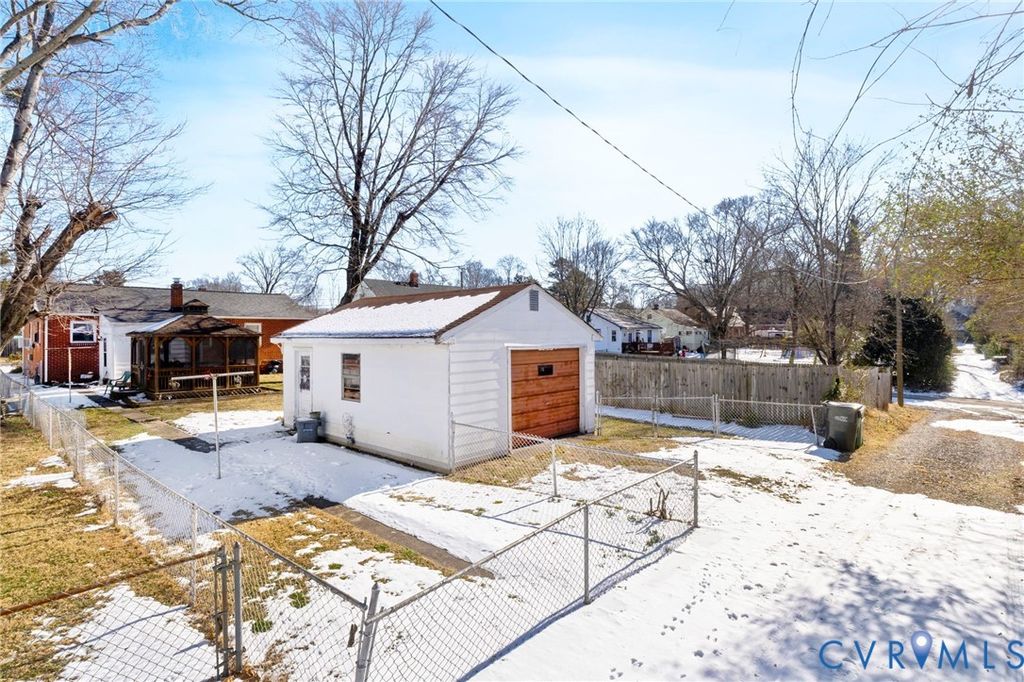 This charming 3-bedroom, 1-bath brick rancher sits on a spacious, thoughtfully landscaped, partially fenced lot. Built in 1959, it's brimming with character, featuring original hardwood floors (some beneath carpet), wood kitchen cabinets, a vintage working Hotpoint oven, and a pocket door between the kitchen and dining room, all in a simple one-level layout. The bathroom keeps its classic style with a tub/shower combo and timeless black-and-white tile flooring. Outside, the large, fenced backyard offers plenty of space for gardens, pets, and gatherings, plus a screened gazebo with a ceiling fan and electricity, and a detached 1.5-car garage. Perfect for first-time buyers or investors, it's conveniently located near shops, dining, downtown Richmond, and the Capital Trail. A new roof was added in spring 2025. Sold as-is and ready for your updates and personal touch!