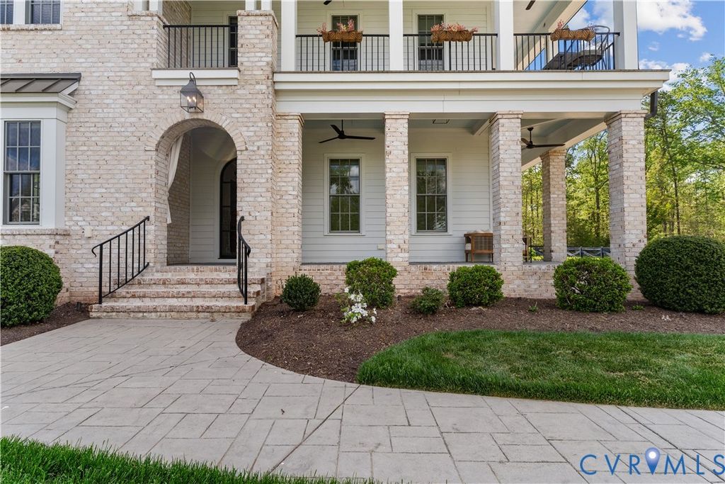 This custom showcase home blends timeless architecture with thoughtfully curated design across three beautifully finished levels. An arched front door welcomes you into a bright, inviting foyer, where 10-foot ceilings, Wellborn + Wright wide-planked oak flooring, and detailed millwork immediately set the tone. Just off the entry, a private first-floor bedroom with access to a full bath offers flexible space for guests or a home office. The formal dining room showcases classic millwork and opens to the wrap-around porch for seamless indoor-outdoor living. The chef's kitchen features custom cabinetry, high-end stainless steel appliances, an oversized island, and a statement range hood, with a butler's pantry and a walk-in pantry for added storage. The family room is equally impressive, with white shiplap walls, exposed wood beams, and abundant natural light pouring in through large windows and French doors. This inviting space is anchored by a cozy fireplace and designed for relaxed, comfortable living. Upstairs, the primary suite offers a spacious walk-in closet and a spa-like ensuite bath featuring a glass-enclosed shower with dual shower heads. Step directly onto the second-floor wrap-around porch"”an ideal spot to start or end your day. Three additional bedrooms and two full baths provide comfortable accommodations and a thoughtful layout for family and guests. The third floor adds even more versatility, offering a multipurpose space for a movie room, playroom, or an additional bedroom. Outside, you'll enjoy a private, fenced backyard surrounded by a wooded backdrop. The expansive stamped concrete patio is designed for entertaining, complete with a built-in fireplace and seating area"”perfect for gathering with friends, hosting weekend get-togethers, or simply unwinding at the end of the day. Set within the highly sought-after Hallsley community, this home offers the perfect balance of luxury, comfort, and lifestyle"”designed to shine in its best light from the moment you arrive.