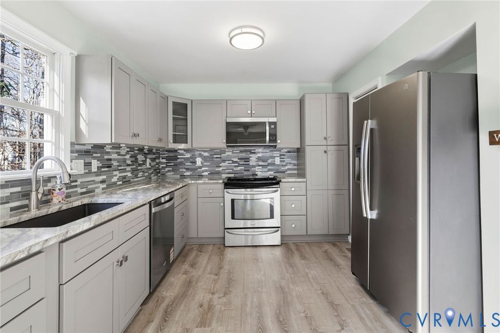 UPGRADES and UPDATES - Beautifully updated and move-in ready, this home shows like new construction! Located in the quiet and conveniently situated Oakley Pointe subdivision, accessible via a single entrance, this 2,048 square foot colonial offers 3 bedrooms and 2½ baths. Step onto newly updated front steps and into an inviting entryway featuring new LVP flooring and an updated half bath. Off the foyer are a flexible office/living room and a spacious dining room, both with LVP flooring. The completely renovated kitchen boasts new LVP, granite countertops, tiled backsplash, new cabinetry, an expanded pantry, and stainless steel appliances. New french doors open to an oversized deck overlooking a private backyard with a peaceful creek setting. Upstairs, LVP flooring continues throughout, along with fully renovated bathrooms featuring tiled floors, granite vanities, and updated tubs/showers. The finished basement provides additional living space with new LVP flooring, a large closet, and an extra-large storage area. Conveniently located just minutes from Short Pump Town Center with easy access to I-64, I-295, and Route 288. Book your showing today - this exceptional value will not last!