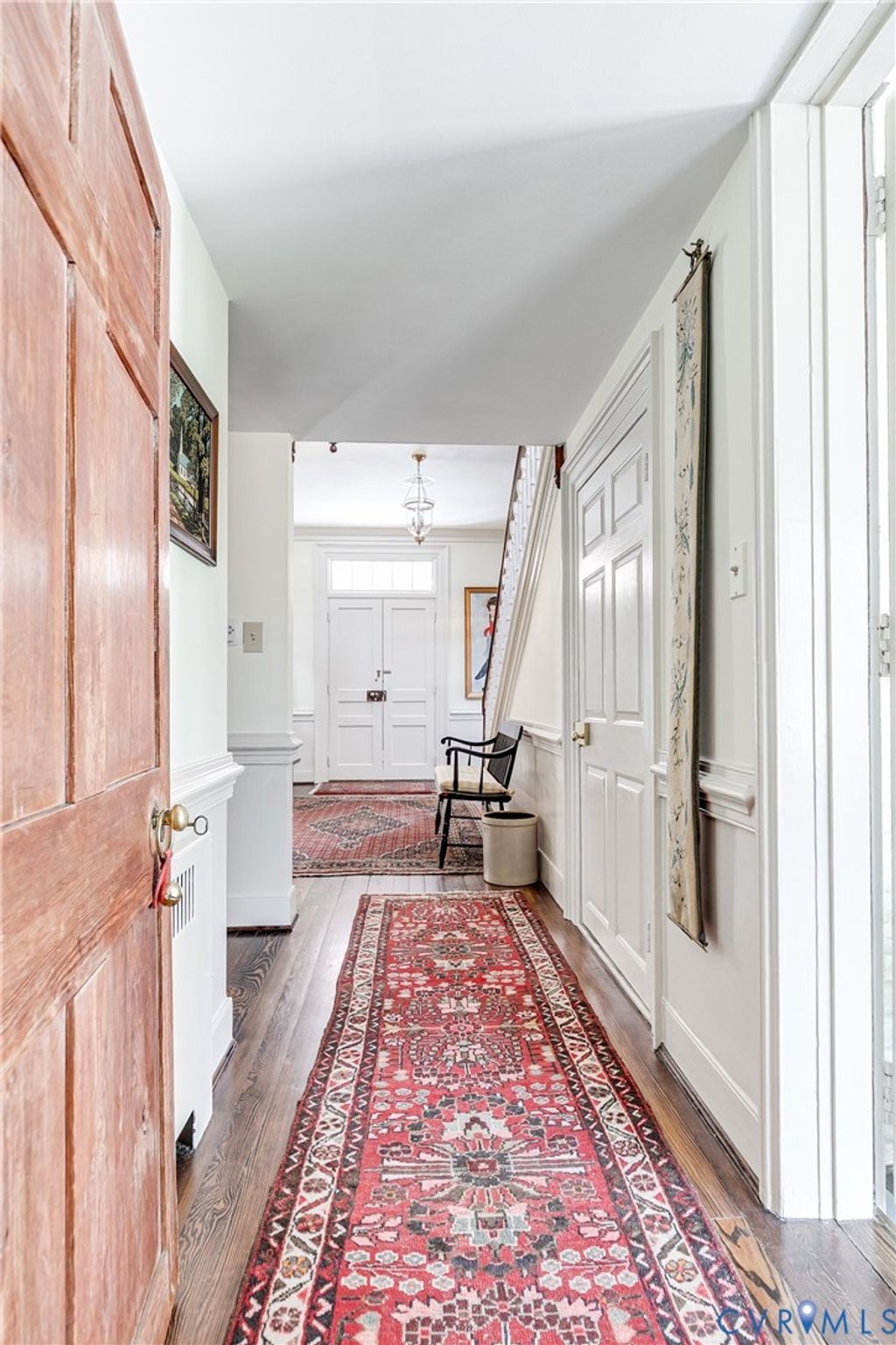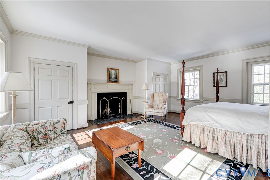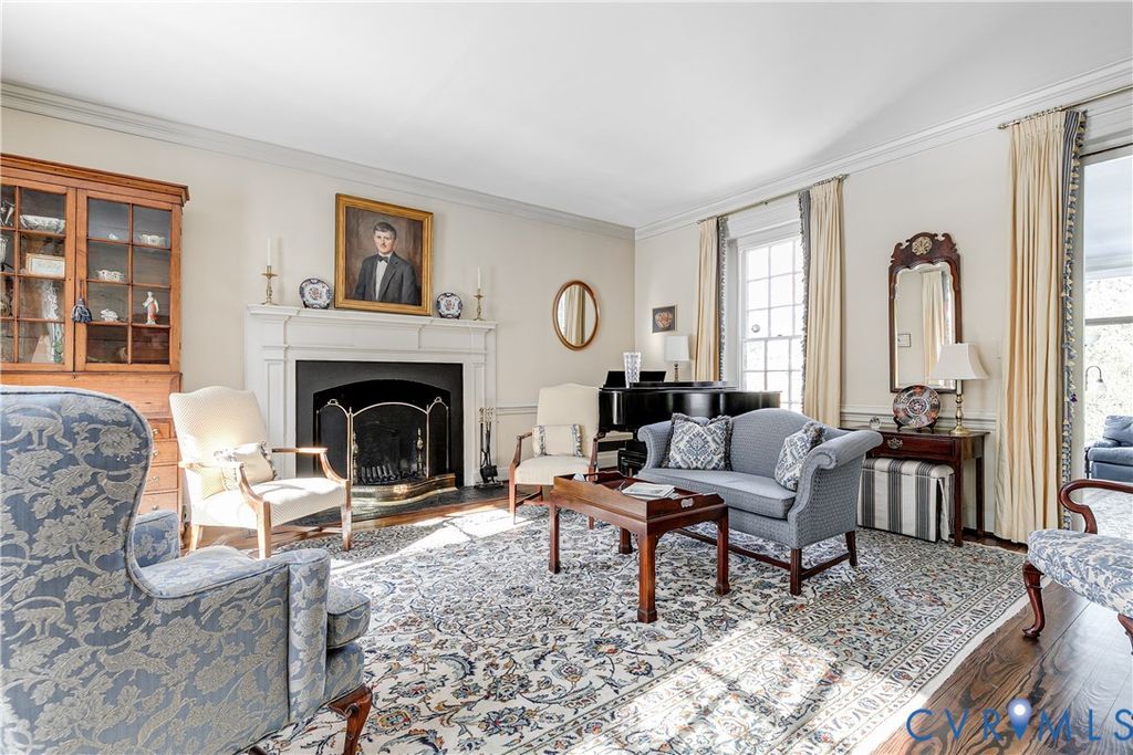 Welcome to "Bienvenue," a remarkable brick and slate residence originally built in 1803 in Hanover County and thoughtfully disassembled and rebuilt in 1937 in its coveted setting near the University of Richmond and the Country Club of Virginia. A Charles Gillette-designed portico entry opens to a gracious front hall highlighted by a soaring Queen's Rise turned staircase and 9½-foot ceilings on the first floor. Elegant living and dining rooms"”both with fireplaces"”offer generous scale, while oversized windows with original wavy glass bathe the interiors in natural light. Period millwork, wide heart pine floors, and timeless architectural details are found throughout. The large, open kitchen features original inset custom cabinetry and granite countertops and flows seamlessly into a handsome paneled den with built-ins and a fireplace. Oversized "Jefferson" windows lead to a charming sunroom with painted exposed brick and steps down to a brick patio overlooking a spacious, beautifully landscaped garden. The brick privacy wall and fountain are beautiful accents to the lovely grounds. The first-floor guest suite provides a comfortable bedroom, a sitting room and full bath- Ideal for an in-law or au pair suite. A covered side entry from the cobblestone edged driveway opens to a practical mudroom. Upstairs, five spacious bedrooms"”including one with a fireplace"”are complemented by three full baths and a wonderful study with built-ins and a fifth fireplace. The waterproofed basement level offers excellent future recreation space with the home's sixth fireplace, along with abundant storage and mechanical areas. The large attic offers great additional storage. Notable improvements include new copper gutters, a whole-house gas generator, newly repaired and replaced roof, and a proper detached two-car garage, completing this extraordinary and historically significant home. Enjoy this picture perfect location walking to Libbie & Grove and the golf course greens at the end of the street!