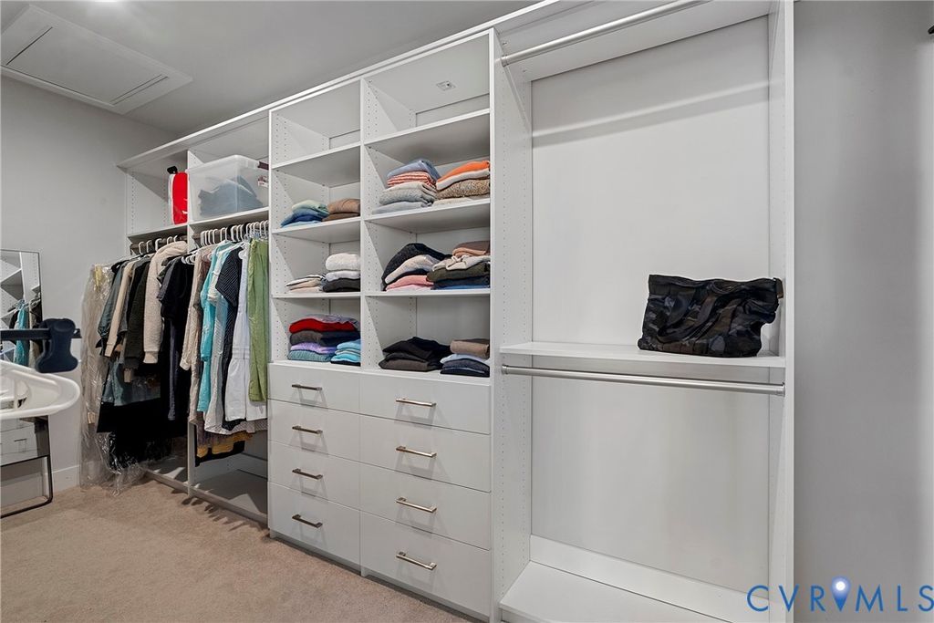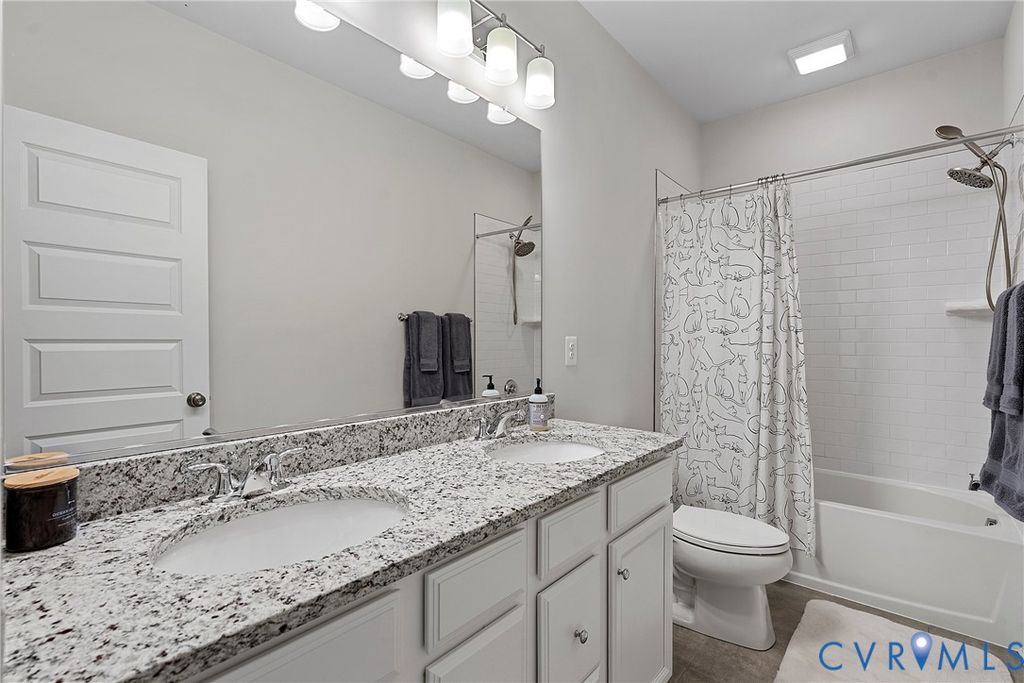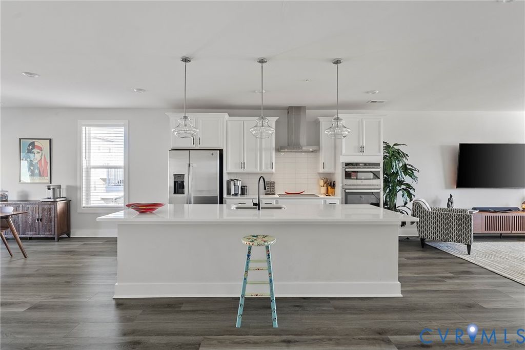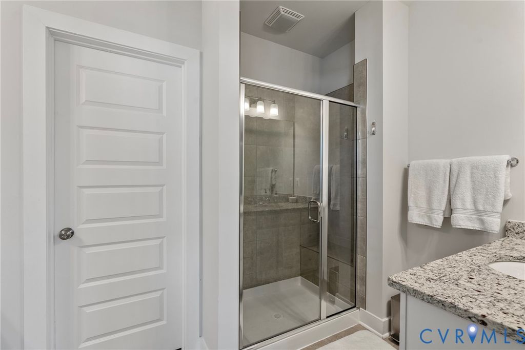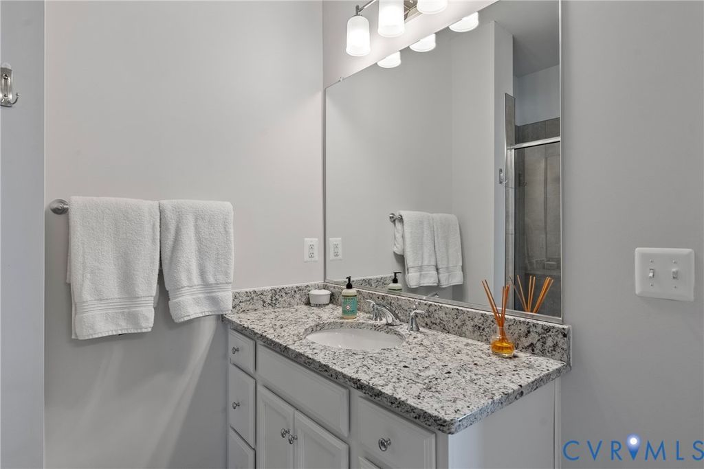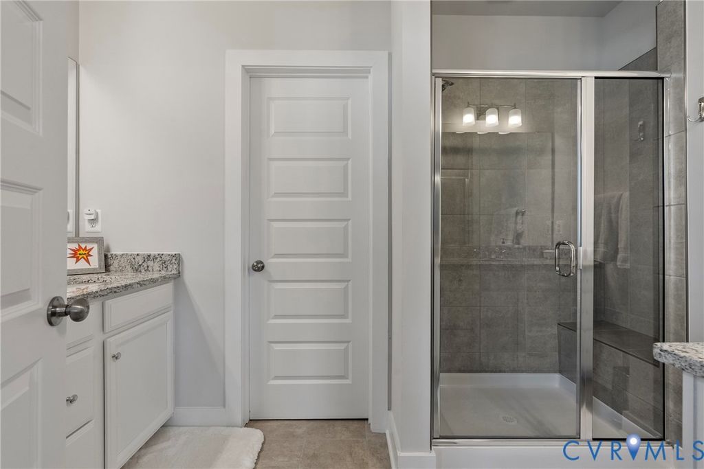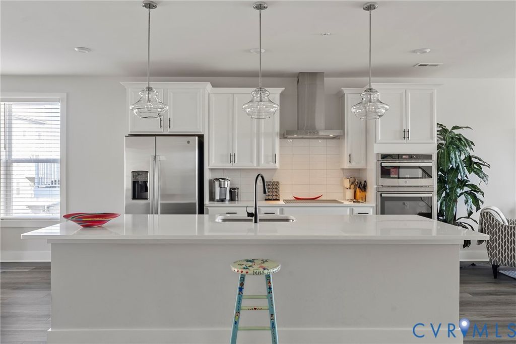 Welcome to this bright top-floor, end-unit home in West Broad Village offering 3 bedrooms, a dedicated office/gym, 2.5 baths, 2,450+ sq ft, a 1-car garage, and a private rooftop deck. Enjoy an unbeatable location walking distance to restaurants (incl Starbucks!), grocery/markets, & minutes from I-64, Shops at Libbie, and recently announced Trader Joe's (2028). Inside, the open-concept main level is filled with natural light; featuring LVP flooring, recessed lighting, and thoughtful upgrades throughout - including an EV charger, smart lock, ring doorbell, motion sensing entry lights, 2" faux wood blinds in living areas, and blackout shades in all bedrooms. The spacious den with bay window, perfectly sized for a sectional & loveseat, flows seamlessly into the kitchen and dining area - perfect for everyday living and entertaining. The kitchen is a standout with quartz countertops, tile backsplash, stainless steel appliances, a vented hood, a built-in microwave, built-in pull-out shelves in bottom cabinets, a 6' x 5' walk-in pantry, and a 12' island with seating overhang. The dining area opens to a balcony ideal for morning coffee, and a dedicated office sits just off the main living space for work-from-home flexibility. Upstairs, the master suite offers plush carpeting, ceiling fan, and a massive 7' x 16' WIC with custom built-ins. The en-suite bath features tile flooring, double vanities with granite countertops, a walk-in tile shower with semi-frameless glass, and a private water closet. Two nicely sized additional bedrooms (both with ceiling fans, one with WIC), spacious hall bath with double granite vanity & tiled tub/shower, and second floor laundry with flexible removable built-in storage shelves complete the level. The community space features gas grills & fire pit and a planned fenced-in dog park. Top it all off with a huge private rooftop deck - a fantastic entertaining space with sunset views and a built-in outdoor, weather-protected TV that conveys. Come see this one in person-you won't want to miss it!