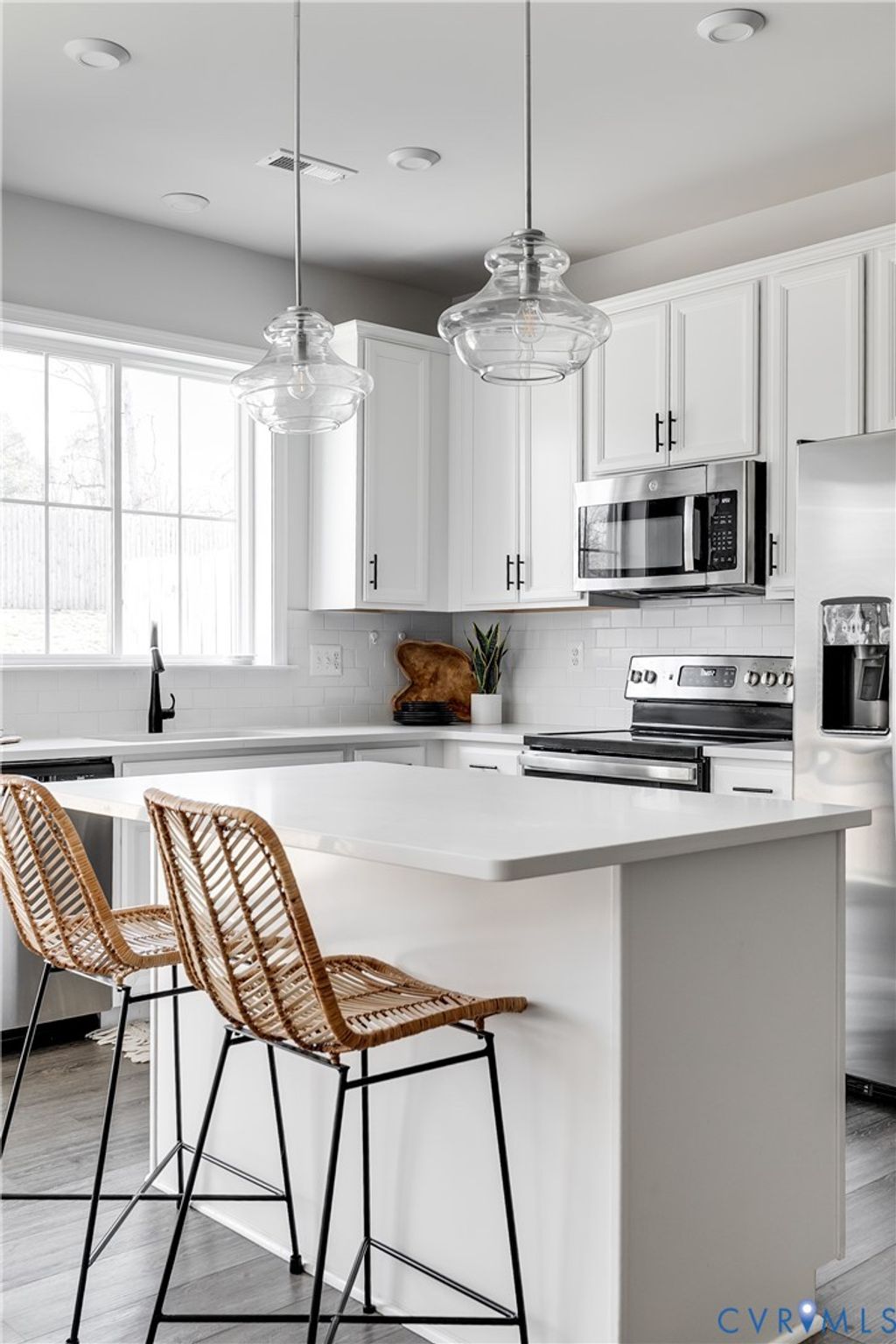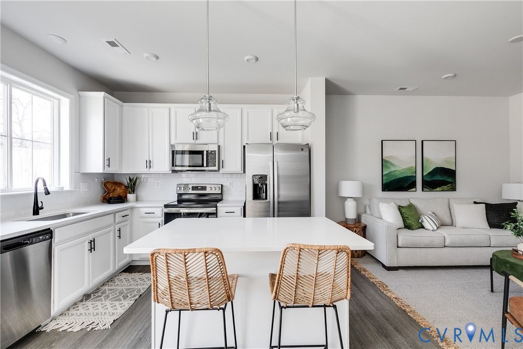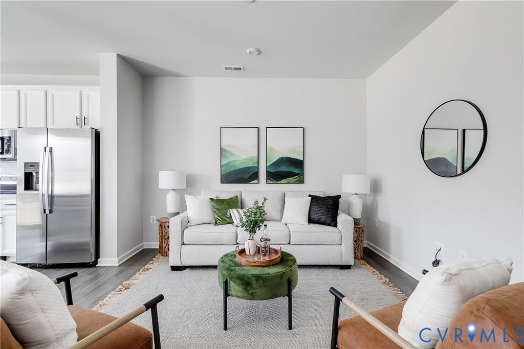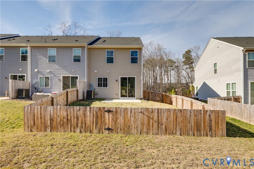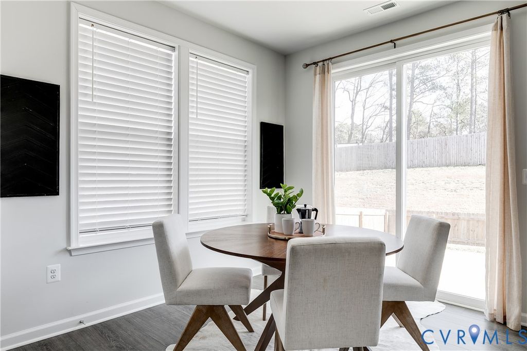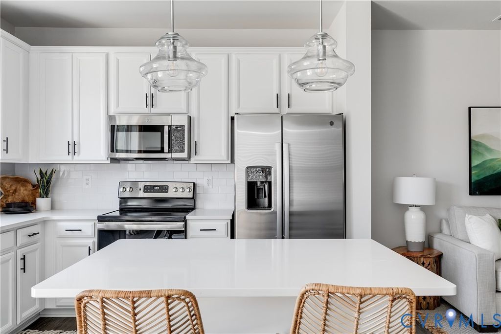 Welcome to 651 McCormick Farm an end unit at The Retreat at One, a superior location minutes from I-95 and I-295 and the Shoppes at Virginia Center and around the corner from Henrico's new Green City! This gorgeous, almost new townhome features 3 bedrooms, 2.5 baths and nearly 1,500 SF with a 1 car garage and a nice sized fenced in back yard! Walk into a bright and open foyer leading you into the nice sized living room. Spacious living room opens to the kitchen and eat in area and features LVP floors, recessed lights and plenty of room for a sectional couch. Deluxe kitchen featuring classic all white shaker style cabinets, white tile backsplash, white quartz with SS Appliances and a smooth top range with an island featuring an overhang thats perfect for everyday eats or entertaining guests! Also boasting a larger eat in area, through the sliding glass doors you'll step out onto a private concrete patio overlooking the fenced in rear yard. The primary suite located in the rear of the home features plush wall to wall carpet with a ceiling fan, large WIC and an en suite featuring a double vanity with granite counter top, tile floors, and a walk in tile shower with a semi frameless glass door! Walk in laundry room boasts a side by side washer and dryer and much needed additional storage. Larger hall bath with tile floors, granite counter tops and a tub/shower. Nice sized 2nd and 3rd bedrooms also offer over head lighting, nice closet space and plush wall to wall carpet. Stop by and see this one for yourself!