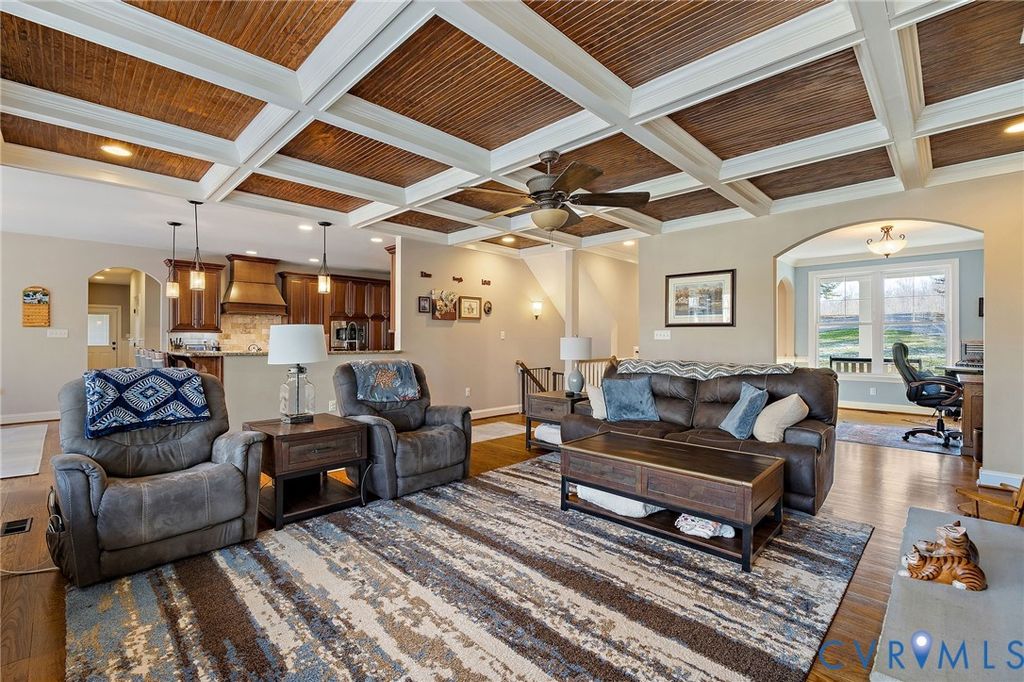 Absolutely stunning custom built Transitional style home located on a beautifully manicured 11.47 acres over-looking a lake, this property features over 4,800 square feet of quality through-out. Built by Southern Traditions and offering formal living/dining room, spacious family room, stone gas f/p, coffered ceiling, gourmet kitchen, beautiful cabinetry, granite, butlers pantry, laundry room w/slate floors, 1st floor primary suite, tray ceiling, primary bath, dual vanity sinks w/granite, ceramic floors, jetted tub, ceramic shower, 2nd floor features 3 additional bedrooms, office/study, bonus room, and 13'.6" x 14'.3" sheetrocked walk-in storage, a fully finished walk-out basement, 32' x 12'.2" recreation room, 2 c/f's, custom built-ins and an additional 18'.6" x 18'.8" primary suite, coffee bar and an amazing primary bath, double vanity, ceramic floors, "marble surround shower and a soaking tub. This home has it all:" lovely hardwood floors, engineered floors, crown molding, chair railing, picture frame, custom built-ins, custom bench in foyer, 2 covered porches w/Trex flooring, screened porch, water treatment system, deep well, whole house generator wired to panel box, gutter guards, barn built with a concrete floor in 2019 (1,536) square feet with it's own panel box and meter, green house, and so much more! Seller's are offering a cinch-HMS warranty at time of settlement.