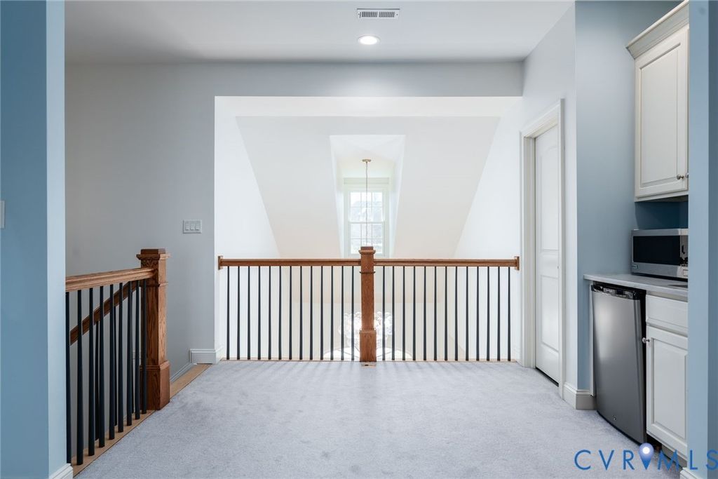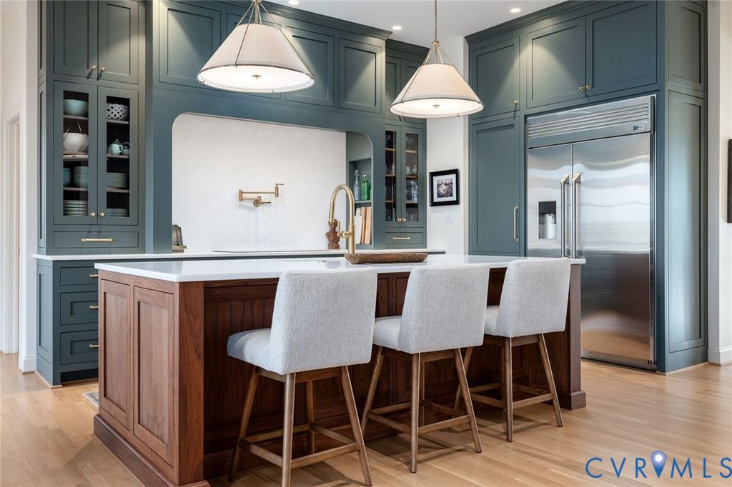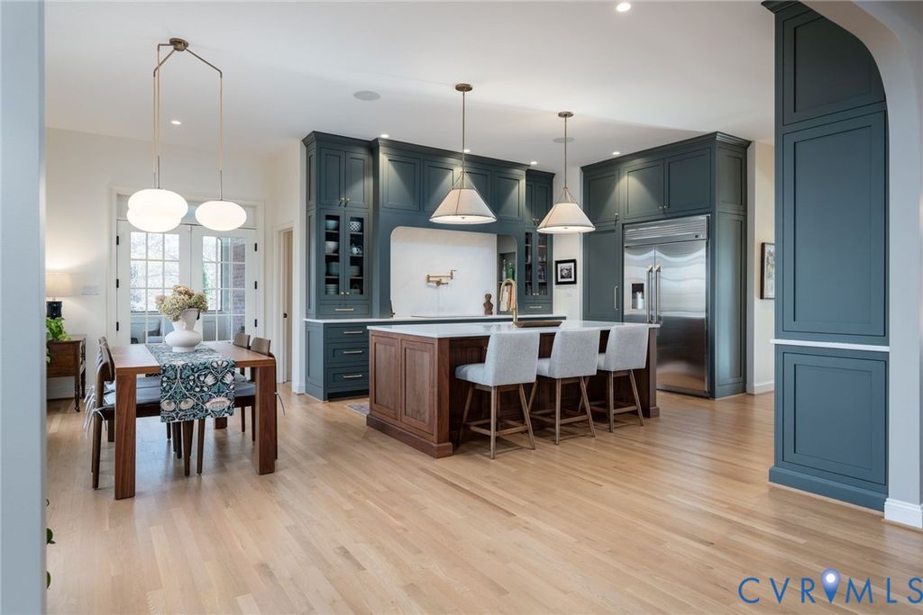 There are homes that impress on paper, and then there are homes that quietly change the way you live. With more than 6,000 square feet designed around light, flow, and the river beyond, 9120 James Riverwatch Drive belongs firmly in the latter. Perched high above the James River, this custom-built residence offers a daily connection to water, sky, and landscape. Mornings begin with soft light over the river's curve, while evenings unfold beneath wide western skies and lingering sunsets. In winter, the river opens fully into view; in warmer months, surrounding greenery creates a sense of privacy and calm. The layout emphasizes mostly first-floor living with four bedrooms, two dedicated offices, and four full plus one half bath. Ten-foot ceilings and white oak hardwood floors give the interiors a clean, airy feel, while expansive windows draw the outdoors in. At the center of the home, the recently renovated kitchen features custom inset cabinetry and premium appliances, equally suited for everyday living and entertaining. Adjacent living spaces are well connected, allowing life to flow with ease. A screened porch overlooking the river provides a peaceful place for slow mornings and evening conversations. The primary suite offers a private retreat with a spa-inspired bath and heated floors. The finished lower level includes direct exterior access and flexible space currently used as a home gym, with potential for a guest suite or fifth bedroom. Riverwatch residents enjoy exclusive access to approximately six acres of shared riverfront parkland with fixed and floating docks, along with proximity to Larus Park and a private gate offering convenient access to the city. This is more than a place near the river. It is a lifestyle shaped by light, landscape, and intention.