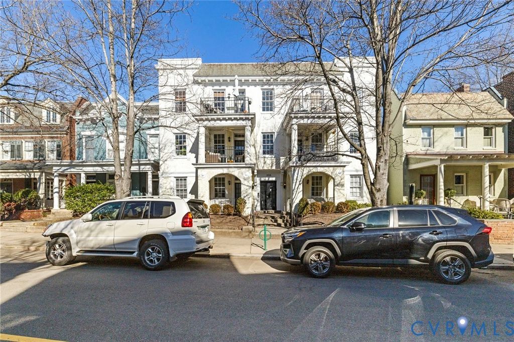 IDEAL first floor condo unit awaits at the Wellesley Condo building! Literally only a few steps to a spectacular restaurant, Kuba Kuba, and a public park for a picnic or playing on the playground with children or grandchildren! How about being only two blocks away from Monument Avenue to take in Easter on Parade or the Monument Avenue 10k each Spring? Lovely covered front porch with arches overlook Park Avenue allows you to talk to the neighbors, dine alfresco, read or entertain! The secured building offers rare off street parking in the back of the building for this unit, as well as private storage. Gleaming hardwood floors throughout make this an elegant jewel box of a condo! Stainless steel appliances, tile backsplash, and granite counters are all crisp and clean which make the space feel like the well appointed kitchen it was designed to feel like. In addition, it offers ease of entertainment with the counter allowing for eating at the bar, as well as conversation with those in the family room. How about an additional dining area which comfortably holds a table for four? Both bedrooms are spacious and can easily hold at least a queen or even king size beds if needed, plus bureau and end tables. The full bathroom boasts a tiled shower stall, combo washer/dryer unit, and was just freshly painted. This is the starter residence or pied-a-terre you've been waiting for in the City of Richmond!