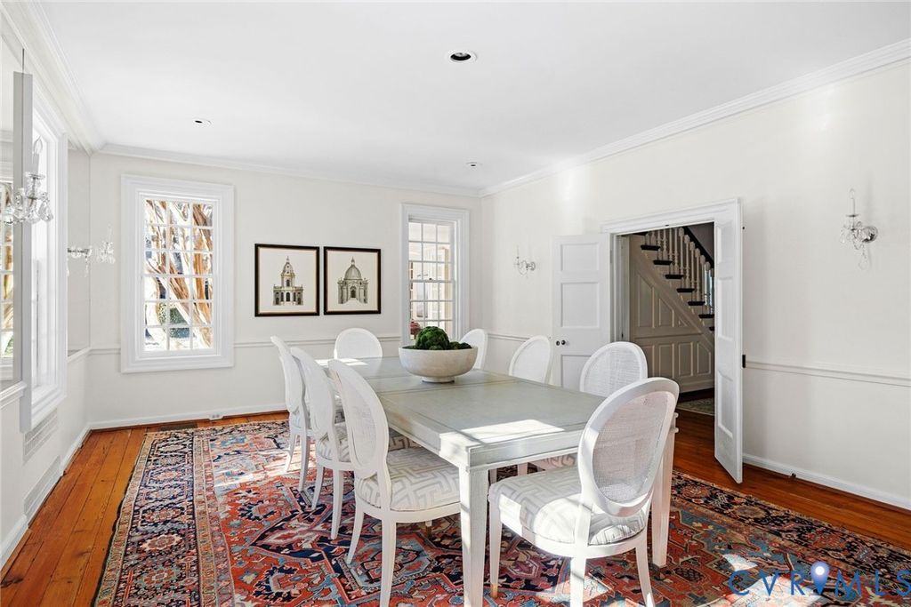Rare offering of one of the original homes along historic Cary Street Road, prominently situated on the corner of Ampthill Road and available for the first time in over 30 years. This stately brick residence, crowned by a slate roof, boasts exceptional curb appeal and a remarkable sense of history. The main portion of the Queen Anne-style home was built around 1687 and relocated from the Appomattox River in 1931, and much of its original character has been beautifully preserved. With extraordinary attention to detail throughout, the home features exquisite millwork, multiple fireplaces, wide-plank pine floors, and timeless architectural elements. A wide brick sidewalk, bordered by mature boxwood, leads to a grand foyer and gracious staircase. Privately tucked behind mature evergreens, the property offers convenient access from Ampthill Road and includes a circular paved driveway, two-car detached garage, and additional dedicated off-street parking. The elegant interior offers formal rooms with refined moldings, chair rails, and 9-foot ceilings. Highlights include a spacious living room with fireplace, formal dining room, and an inviting eat-in kitchen with bay window, island, walk-in pantry, double ovens, gas cooking, and high-end appliances. Additional main-level spaces include a cozy family room with built-ins and fireplace, a wet bar room, a library with built-ins and fireplace, and a sunroom with tile flooring, ceiling fan, and access to the patio. Upstairs, the primary bedroom suite features an arched doorway, fireplace, generous en-suite bath, and walk-in closet. Two additional bedrooms share a Jack-and-Jill bath, while a fourth bedroom enjoys a private bath and access to a rear staircase. A conveniently located laundry room completes the upper level. The charming 1 bedroom, 1 bath guest house offers a covered porch with fireplace and a beautiful living room featuring a wall of built-ins, wet bar, and French doors. This exceptional historic property is truly a one-of-a-kind opportunity.