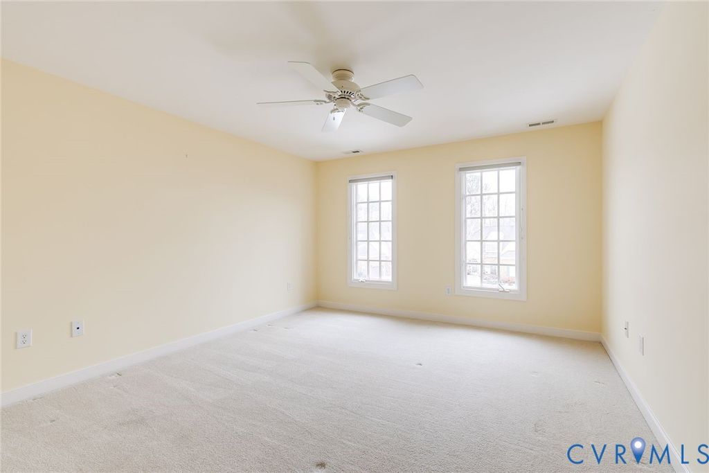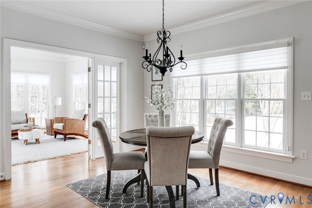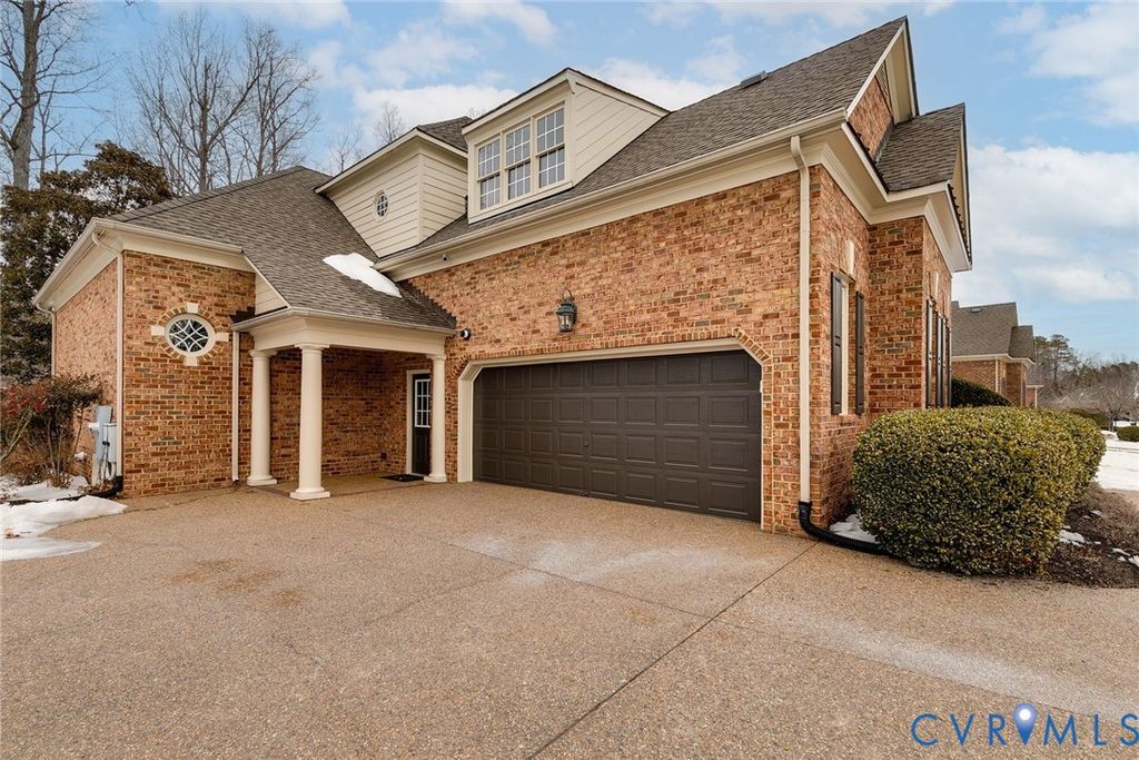 Located in the desirable Coach Homes section of Kinloch, 507 Hunt Field Road showcases custom craftsmanship paired with easy, low-maintenance living. Offering 4547 square feet, 4 bedrooms, and 4.5 baths, this beautifully designed home is filled with natural light, generous living, room to expand, and a true sense of luxury. A two-story foyer and dramatic light-filled two-story family room with gas fireplace set the tone with an immediate feeling of openness and homey feel. Fresh interior paint and updated light fixtures add a crisp, modern touch throughout. The floor plan balances function and flexibility with a first-floor primary suite, private home office, and a dedicated billiards or media room. The kitchen opens seamlessly to the family room and showcases granite countertops, stainless steel appliances, a center island with seating, and a bright eat-in area ideal for everyday dining or entertaining. Just off the kitchen, a sunlit sunroom with French doors and walls of windows offers a beautiful space to relax. Tucked on the first floor, the primary suite feels like its own private retreat with an elegant tray ceiling, separate dressing area, and dual custom walk-in closets. The spa-inspired ensuite bath is designed for indulgence, featuring two vanities, dual water closets, an expansive walk-in shower, and a soaking Jacuzzi tub for ultimate relaxation. Upstairs, you'll find three additional bedrooms, two full bathrooms, and a spacious billiards or media room or 5th bedroom. Enjoy time outdoors on the raised aggregated patio, ideal for relaxing or entertaining. The garage stands out with custom cabinetry and custom flooring, while the expandable walk-up attic provides exceptional storage or future expansion potential. Living in Kinloch means enjoying low-maintenance convenience, including HOA-covered exterior upkeep and snow removal. Just moments from Kinloch Golf Club, Hermitage Country Club, and Short Pump Town Center, this home offers the perfect balance of luxury, ease, and location.