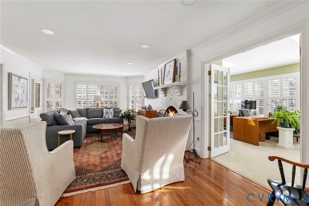 Beautifully renovated 4 bedroom Colonial in Gayton Forest West. Situated on a private lot, this home has room for the whole family. First floor has beautiful covered front porch that wraps around the house; Foyer with turned staircase; Living Room with built-in bookcases and pocket doors to Family Room; Formal Dining Room with chandelier and picture frame molding; huge Family Room with brick fireplace with wood mantle and gas logs, and opens to Kitchen, Sun Room and Living Room; beautifully-renovated chef's Kitchen with granite counters, tile backsplash, gas cooktop with range hood, dual electric ovens zand large eat-in area; Mud Room with tile floor, washer and dryer hookups, built-in cabinets, center island and drop zone; Florida Room with skylights opening to large screened Porch with two ceiling fans and skylights; and Powder Room. Second floor has huge Primary Suite opening to Sitting Room, Beautifully renovated Primary Bath with dual vanities, large tile shower with rain head and handhelds; three additional bedrooms and renovated hall bath. Third floor has finished bonus room. Plantation shutters throughout the first and second floor, invisible fence in the back. Hardwood floors and crown molding in main Living areas. Large flat private back yard. Sprinkler system in front and back. Great schools: Pemberton, Quiocassin, and Godwin. Join the nearby Raintree Swim and Racquet Club. Great nearby walking trails and located near Deep Run Park.