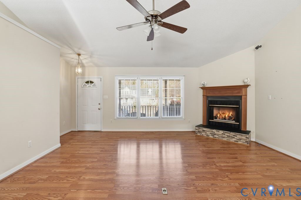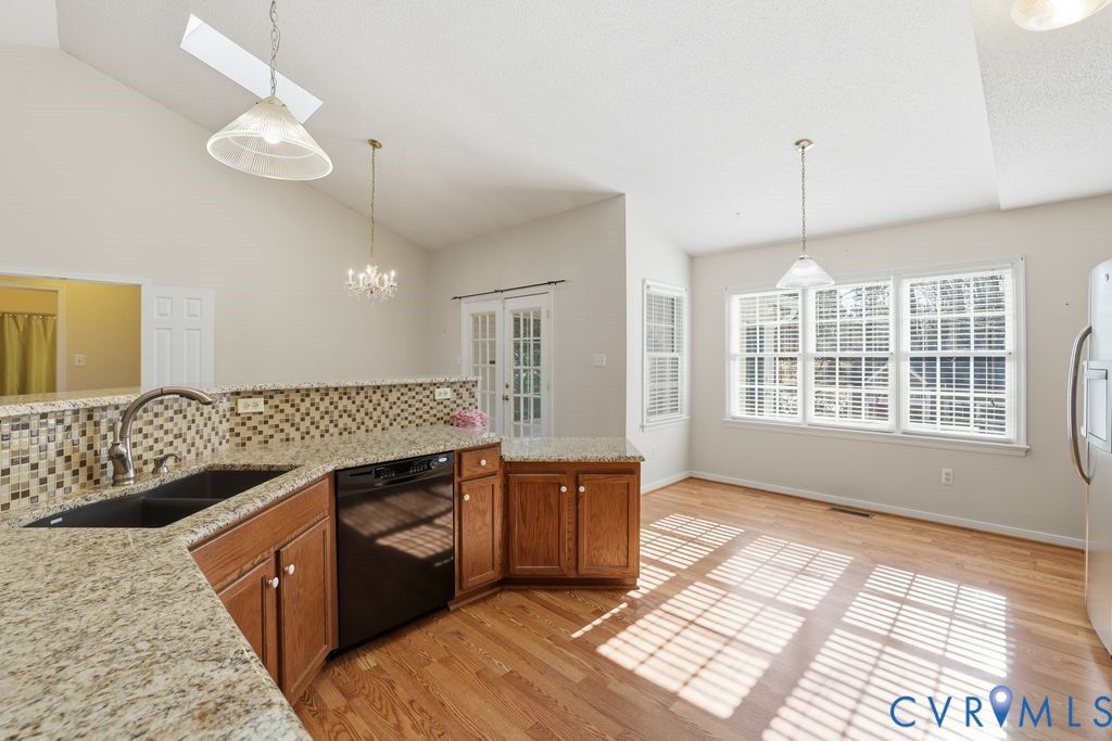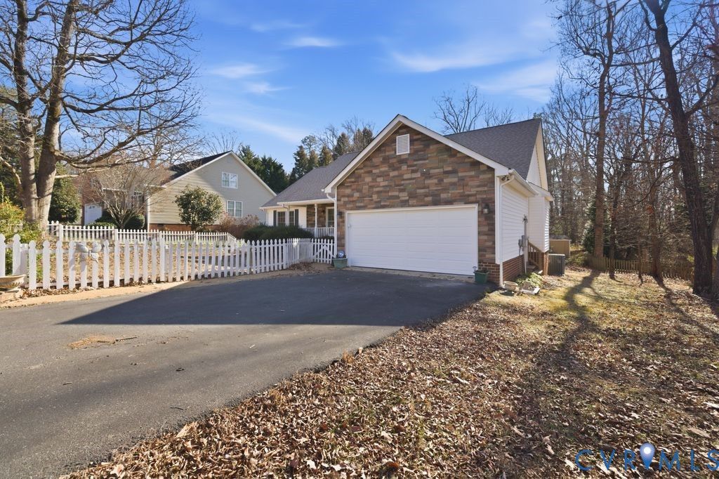 Welcome home to this charming ranch-style retreat nestled in the heart of Bon Air, tucked away in a quiet, cozy neighborhood. A cute white picket fence and inviting rocking chair front porch set the tone as you arrive. Inside, beautiful vinyl plank flooring flows through the main living areas, where a bright and airy open-concept living, dining, and kitchen space features soaring vaulted ceilings and a cozy gas fireplace"”perfect for both everyday living and entertaining. The spacious kitchen overlooks the living and dining areas and offers granite countertops, a stylish tile backsplash, and ample workspace. Just off the dining area, the sunroom adds even more light-filled living space and opens to a generous deck, ideal for relaxing or hosting gatherings. The primary bedroom is a comfortable retreat with a walk-in closet and a private en-suite bath featuring tile flooring and double sinks. Two additional bedrooms share a full hall bathroom with a tub/shower combination. A two-car garage provides excellent storage, while the nicely sized backyard includes two sheds for even more storage options. Conveniently located and full of charm, this home offers comfortable one-level living with thoughtful details throughout"”don't miss the opportunity to make it yours.