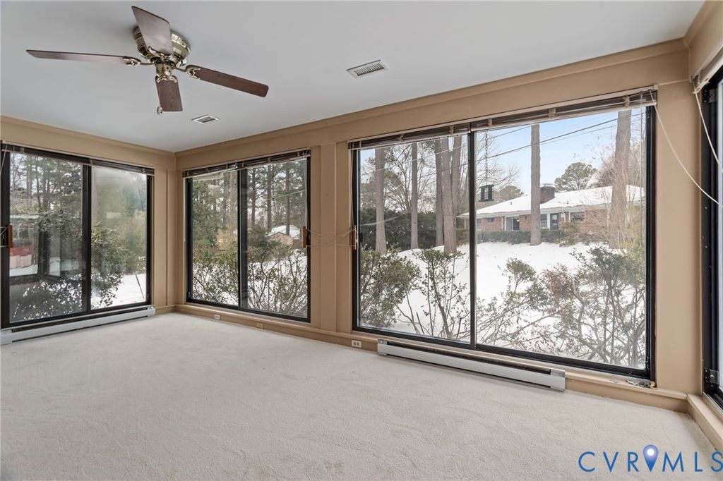 Welcome to 10505 Thames Dr! This charming rancher in the Canterbury neighborhood radiates curb appeal with its classic brick exterior and manicured lawn, setting the tone for what awaits inside. Step through the front door, and you'll find a thoughtfully designed layout that seamlessly blends comfort and style. Boasting a fresh coat of neutral paint throughout, this home is complemented by stylish new light fixtures that add a modern touch. The sunlit living spaces boast gleaming hardwood floors and plenty of windows, creating an atmosphere of warmth and sophistication. The living room and dining room are awash in natural light, and ready for you to make them your own. The heart of the home - a bright, sunny kitchen - features plentiful countertops and ample cabinet space, making it perfect for both everyday living and entertaining. Down the hall is a full bath and three spacious bedrooms, providing flexibility for family, guests, or a home office. The primary bedroom offers a private retreat with an ensuite bathroom, perfect for unwinding after a long day. At the back of the home is an inviting three-season porch that offers the perfect space to relax and enjoy the outdoors year-round. Outside, the backyard beckons with its serene setting, complete with a lush lawn and room to create your own outdoor oasis. Whether you're hosting a summer barbecue or enjoying a quiet evening under the stars, this space is sure to impress. Located in a prime location in Henrico, this home offers convenience to schools, shopping, dining, and major commuter routes. It's the perfect blend of suburban tranquility and urban accessibility.