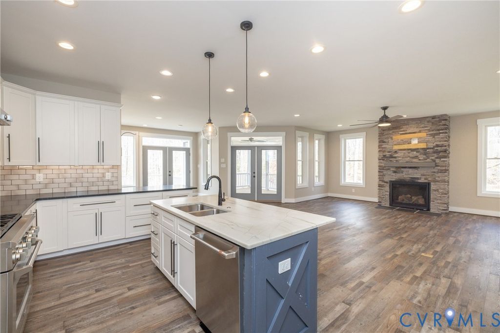 Stunning 5-bedroom, 5.5-bath single-family home on 9.65 acres with 4,235 sqft on levels 1 & 2 plus 1,834 sqft fully finished basement. Includes a private in-law suite with full bath, perfect for guests or multi-generational living. Wide open floor plan with first-floor office/library featuring enclosed adjustable bookshelves, and a welcoming stone gas fireplace. Gourmet kitchen boasts quartz and soapstone countertops, GE Monogram 6-burner gas oven with hood, double French door wall oven, GE Cafe refrigerator with Keurig, and GE Cafe dishwasher"”ideal for entertaining and everyday cooking. Engineered hardwood flows throughout the main level and basement, with carpet on the second floor. Expansive back deck rolls seamlessly into a heated screened porch with TV, creating a perfect indoor/outdoor living and entertaining space. 3-car finished garage provides ample storage. 360 Ring Camera Floodlights Home offers incredible convenience"”only 7 minutes to I-64, near shopping, parks, and excellent schools, and just 20 minutes to Short Pump. Xfinity available. Land includes 3 remaining cuts, making it divisible for future use or investment. Exceptional combination of luxury, functionality, and location in a serene country setting, yet close to urban amenities. Don't miss this rare opportunity!