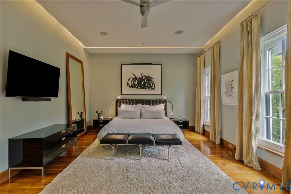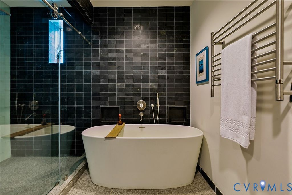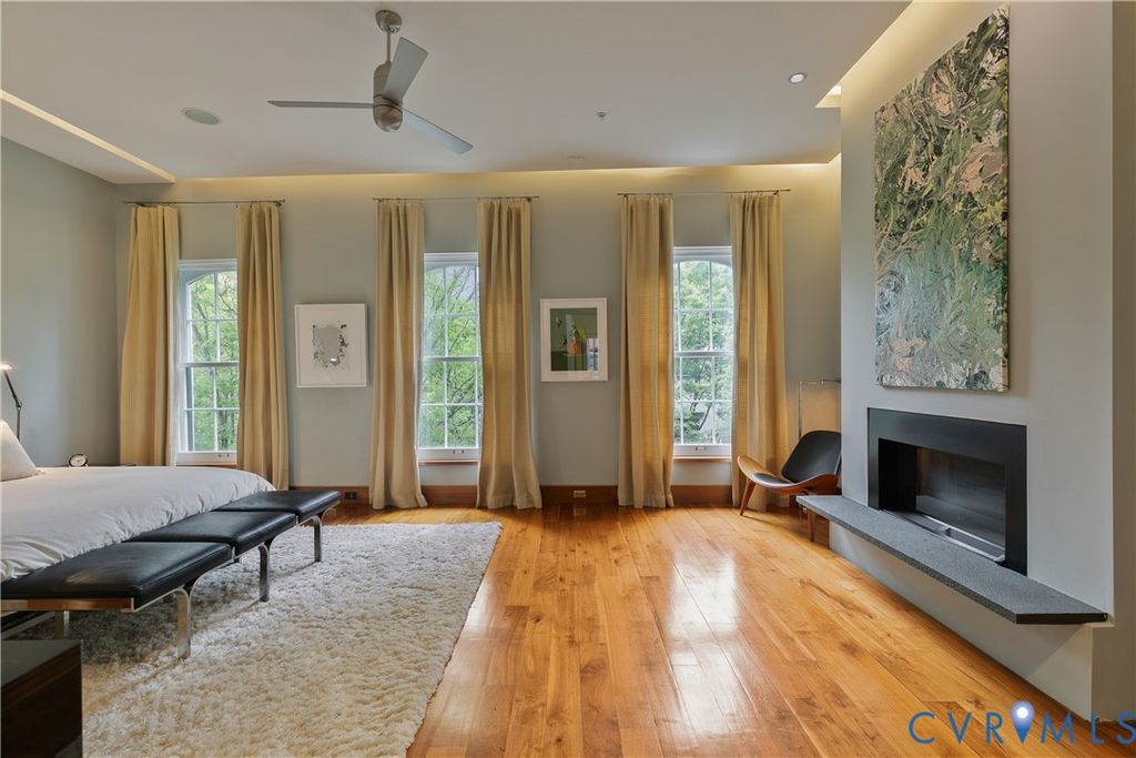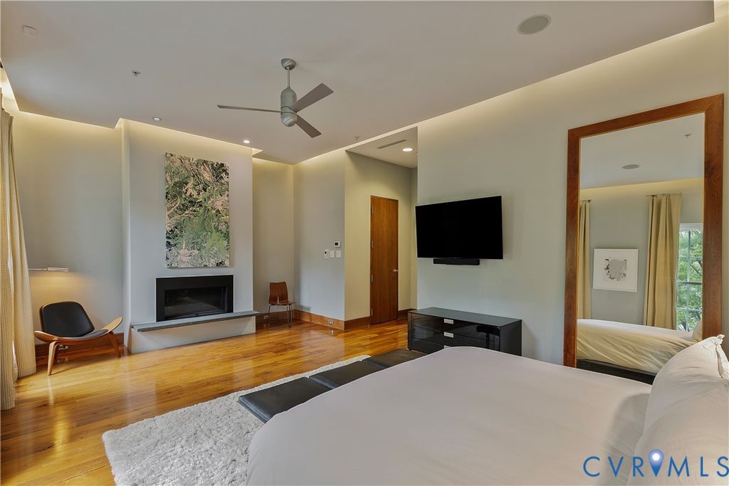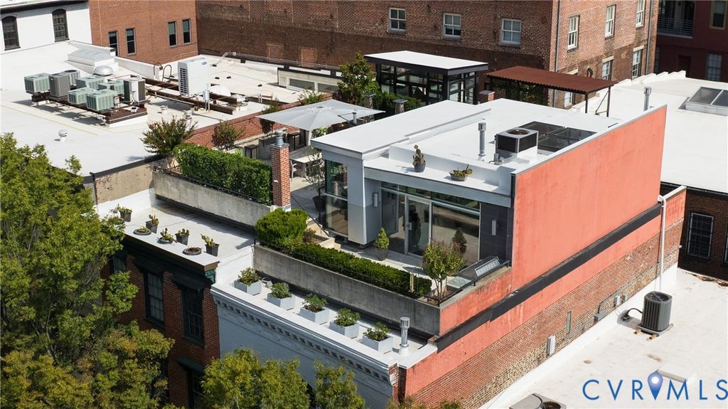 Experience true luxury living in this one-of-a-kind Manhattan-style penthouse, offering nearly 6,000 sq. ft. of premier entertaining space located on the cobblestone streets of Shockoe Slip. This smart home features 3 spacious bedrooms, 4.5 baths, and two full-service kitchens spread out on 3 floors plus an expansive rooftop terrace showcasing breathtaking panoramic city views. Every detail has been thoughtfully designed, from the Control4 whole-home automation system (lighting, climate, surround sound, and security) to custom walnut cabinetry, Miele appliances, soaring ceilings, floating staircases, and 5" walnut and granite flooring. The living room is enhanced by museum-style drop ceiling lighting, creating the perfect ambiance to showcase art and elevate the home's sophisticated design. The residence also includes 4 fireplaces, 6 mounted TVs, a 250-bottle wine closet, and a private glass-and-steel greenhouse. The rooftop terrace is an entertainer's dream, complete with built-in seating and planters, stainless steel grill, outdoor lighting, and sound system. Inside, you'll find a seamless blend of sophistication and comfort with high-end, designer finishes. All of this, just steps from top restaurants, entertainment, the James River, Browns Island, The Capital Trail, and Richmond's Financial District. Easy access to interstates and MCV makes this home as convenient as it is stunning. Don't miss the rare opportunity to own a truly exceptional penthouse retreat in one of Richmond's most vibrant neighborhoods!