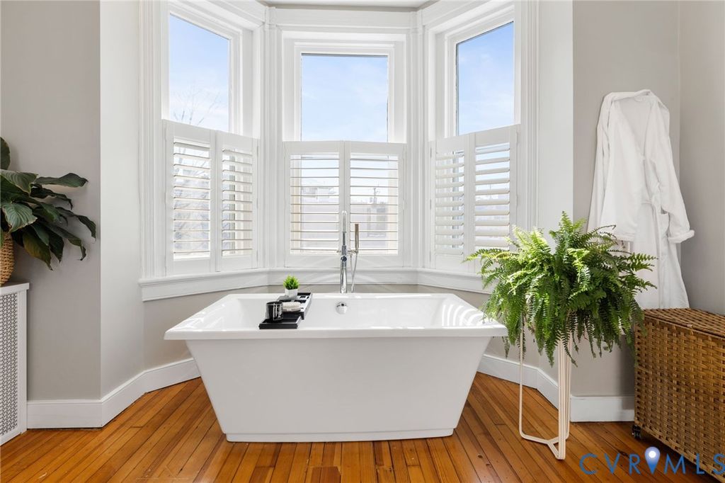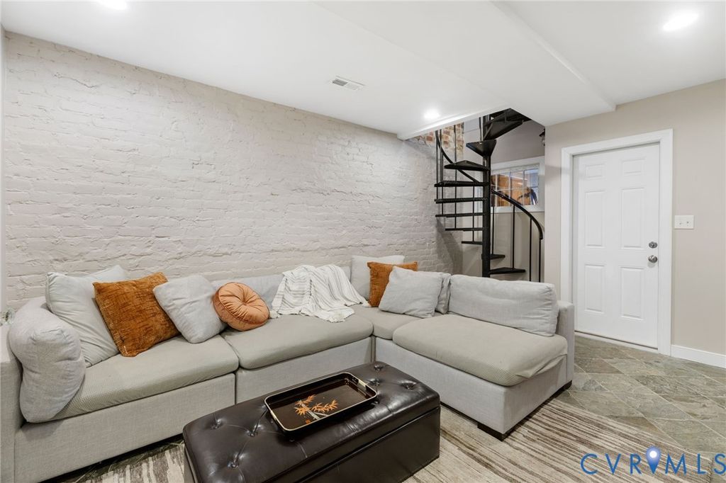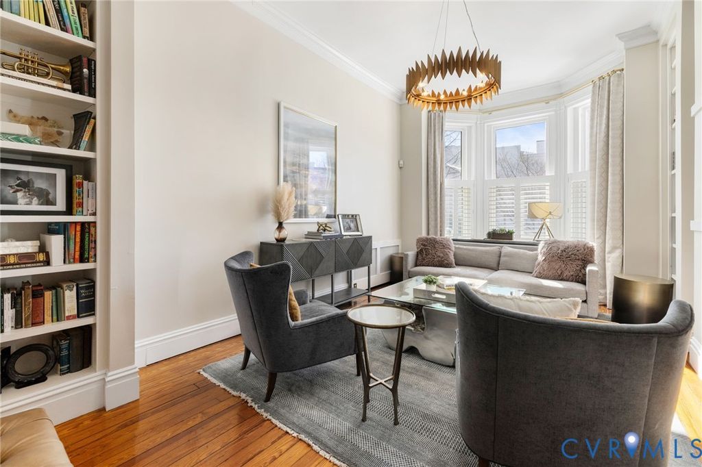 Finished basement. Secure detached garage. Iconic Park Avenue. This exceptional and beautifully updated Fan townhouse delivers features rarely found together"”wrapped in timeless architecture, soaring 11' ceilings, and over $100,000 in recent upgrades. Original hardwood floors, mantels, transoms, ornately carved rosettes, and millwork set the tone. Dramatic arched openings lead to dual parlors with gas fireplace, chandeliers, and a convenient wet bar"”ideal for entertaining. A formal dining room flows into the spacious eat-in kitchen featuring granite counters, custom cabinetry, exposed brick and stainless steel appliances including a Viking range with double griddle. New glass doors open to a generous deck and private brick patio for seamless indoor-outdoor living. A rear spiral staircase leads from the kitchen down to the basement mudroom with stone floors and direct rear patio access"”connecting to the priceless off-alley covered garage parking for two cars. Upstairs, the light-filled primary suite offers a bay window with plantation shutters, gas fireplace, newly designed dual walk-in closets with custom built-ins, and a recently updated en-suite bath with soaking tub, tiled shower with bench, dual floating vanities, and private water closet. Two additional bedrooms down the hallway share a white-tile hall bath, which also houses the laundry. The exceptional finished basement features 8' ceilings, recessed lighting, stone floors, a large recreation room with gas fireplace, wine cellar with wet bar, full bath with shower, fourth bedroom or private office, and family room"”arguably one of the best basements in the Fan. All set behind a deep, landscaped front yard with iron fencing, just steps from the Fan's renowned walkable dining, culture, and lifestyle. Over $100,000 in upgrades since 2022. Opportunities like this are seldom available in the Fan"”schedule a private showing to experience this rare offering firsthand.