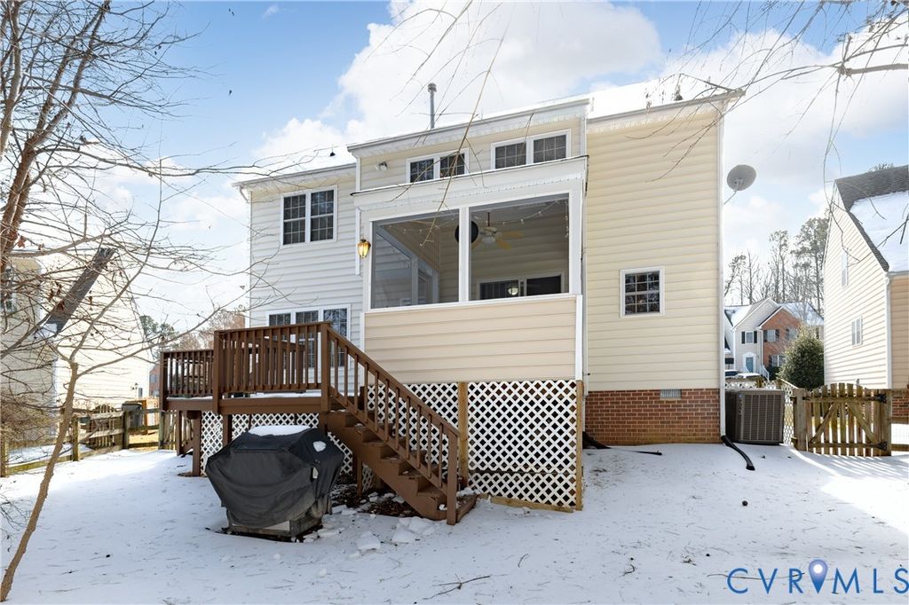 Welcome to 14412 Ashdale Way, a beautifully updated 4-bedroom, 2.5-bath home located in the sought-after Birkdale Golf community of Chesterfield County. Offering 2,119 square feet of well-designed living space, this home is truly turn-key and ready for its next family. The main level features warm, inviting, and functional spaces ideal for everyday living and entertaining. The refreshed kitchen includes all new stainless steel appliances (2025) and opens to the dining and living areas. A cozy family room with a gas fireplace provides the perfect gathering space. Just off the foyer entrance there is a versatile bonus room, ideal for a home office, sitting room, or play space. Step outside to the screened porch, extending your living space and overlooking the rear fenced backyard, perfect for kids, pets, and weekend enjoyment. A storage shed adds extra convenience. Upstairs, you'll find four generously sized bedrooms, including a primary suite with an updated bathroom and new flooring. Recent interior improvements include fresh paint throughout and new laminate flooring, creating a clean, modern feel from top to bottom. Major updates provide peace of mind, including a roof replaced in 2013, HVAC replaced in 2011 and professionally serviced bi-annually, and a hot water heater less than one year old. Exterior updates in 2025 include replaced and painted wood trim, freshly painted shutters and front door, and a newly stained rear deck. The Birkdale community offers walking paths, a scenic lake, and award-winning Chesterfield County schools, all while being conveniently located near shopping, dining, and highway access. This home has been thoughtfully updated and meticulously maintained"”move in with confidence and start making memories right away.