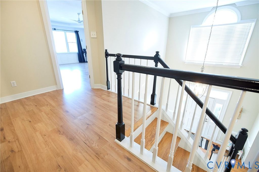 Beautifully updated home in sought-after Manor Park at Wyndham, located on the 12th hole of Golf Course. Features a dramatic two-story foyer, flowing living and dining spaces, and an open kitchen overlooking the family room"”Enter into a 2-story foyer w/ beautiful chandelier & staircase to the 2nd floor, a Family room with a bay window & open to the modern white kitchen with gorgeous cabinetry & subway tile backsplash, a vast breakfast bar, spacious eat-in area full of natural light, ideal for entertaining. Spacious primary suite with sitting area, walk-in closet, and spa-style bath with skylight, jetted tub, separate shower, and double vanity. Three additional generous bedrooms. Recent updates include a 50-year roof, gas fireplace, refreshed powder room, accent walls and new flooring upstairs. Private wooded setting with access to walking trails, parks, tot lot, and all Wyndham amenities. Convenient to Short Pump, major highways, and top-rated Henrico County schools.