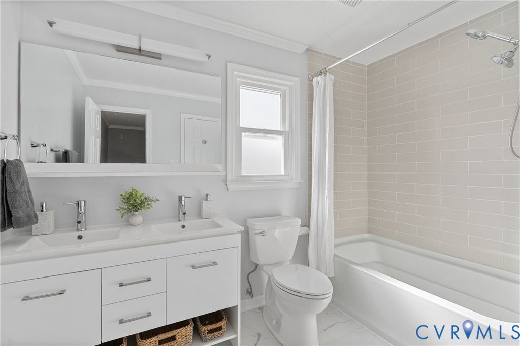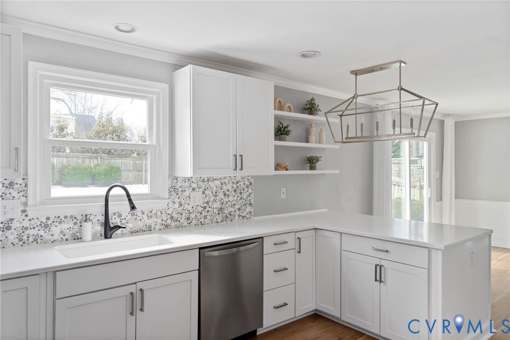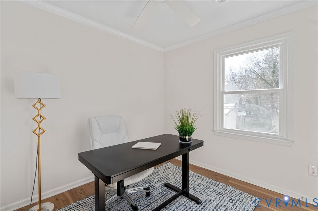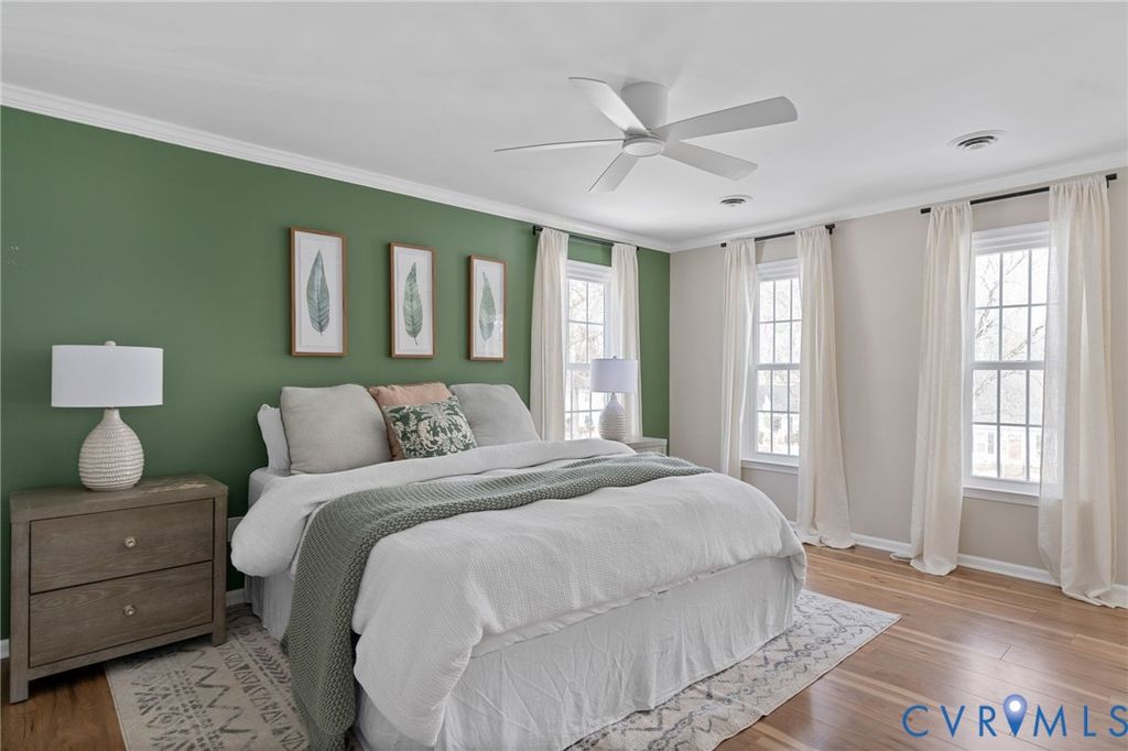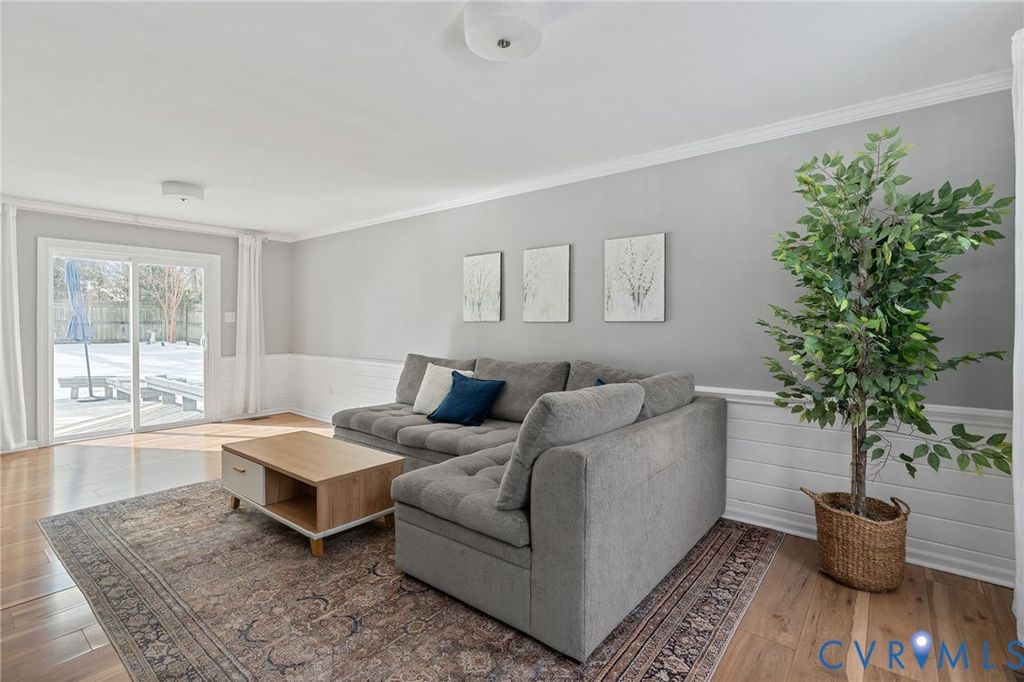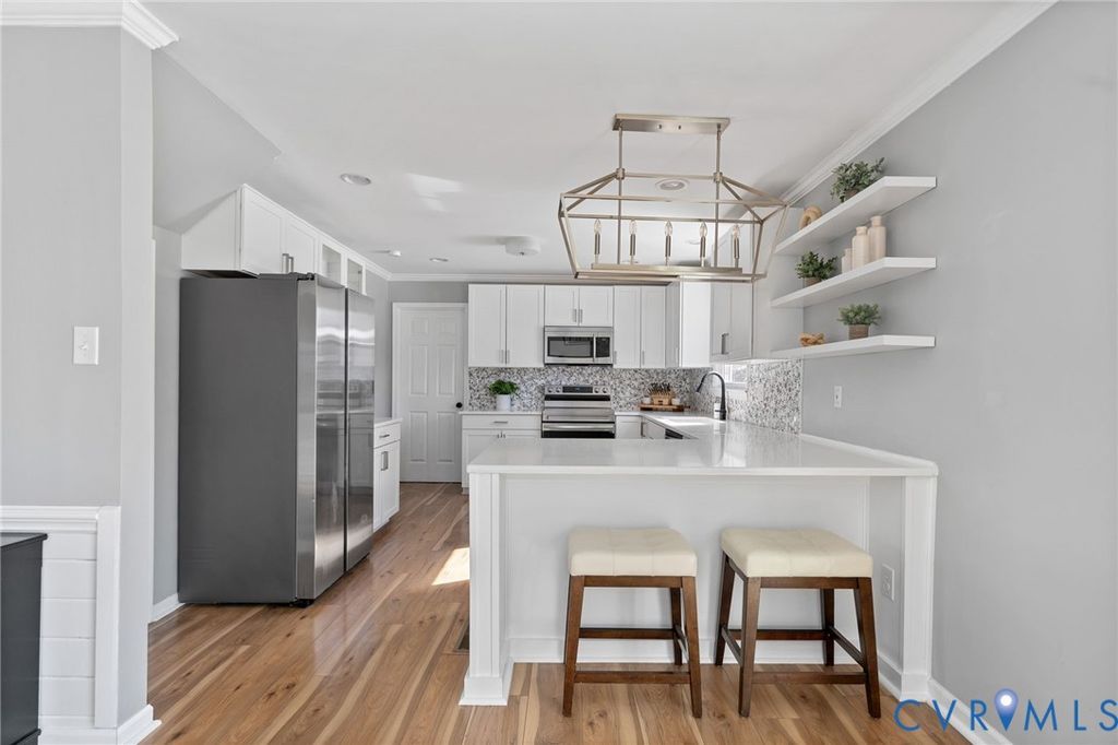 A true show stopper! This adorable colonial has been beautifully updated and meticulously maintained- all you need to do is settle in! Stepping inside, you'll find upgraded laminate flooring and crown molding that flows throughout the entire home. Directly off the entry, the formal dining room features a chandelier and a dry bar with cabinetry. The spacious family room is the heart of the home and offers access to the kitchen as well as a sliding glass door leading out onto the rear deck. The GOURMET kitchen is a chef's dream, FILLED WITH UPGRADES. The spacious kitchen features quartz countertops, upgraded cabinets with pull-outs, stainless steel appliances, including a fridge to convey, a barstool area with a chandelier. A laundry room, with a washer and dryer to convey, and a powder room for guests complete the first floor. Upstairs, you'll find the primary bedroom, which offers a walk-in closet, and access to the full hall bath, which has been FULLY RENOVATED and offers a tiled tub/shower combo, tile flooring, and a double vanity. Two additional bedrooms, both with ceiling fans and closets, complete the second floor. Out back, you'll find a spacious deck that overlooks a landscaped yard surrounded by a privacy fence, providing the perfect backdrop for relaxing evenings and sunny weekends. A spacious detached storage shed provides room for all your storage needs. This home offers NEW vinyl siding and all NEW windows installed in 2025. All appliances and water heater 2021. Enjoy easy access to area shopping, dining, and attractions, including Castle Point Park, Hungary Creek Middle, Glen Allen High, Hungary Creek Pool & Rec Association, and Glen Allen Library. Don't miss out on seeing this one, it won't last long!
