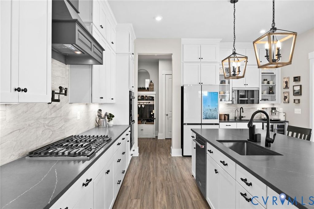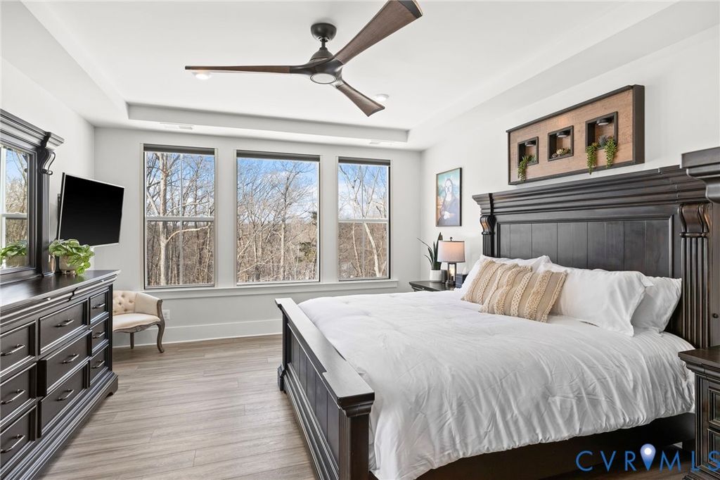 One of only four semi-custom Drees Kaitlyn homes in Embrey Mill, this exceptional 2024 build is set on a premium cul-de-sac lot with an extended driveway, deep setback, and wooded rear views. Among the largest homes in the community, it was meticulously optioned with nearly every available upgrade"”creating a level of finish, technology, and functionality rarely found at resale. The light-filled main level showcases soaring 10-foot ceilings and a showpiece kitchen with floor-to-ceiling cabinetry, quartz countertops, custom wood range hood with pot filler, and a premium suite of smart appliances, including double ovens and a Samsung Bespoke AI refrigerator. The living area is anchored by a gas fireplace framed by architectural windows, recessed LED lighting, Cat-6 wiring, and a dramatic 12-foot four-panel glass door that opens to an elevated outdoor living space complete with stone gas fireplace, built-in speakers, TV wiring, and gas grill hookup. A main-level office with glass French doors offers flexibility for remote work or conversion to a 5th BR. The primary suite is a true retreat, featuring a private outdoor sleeping porch, Ecobee climate control, Hunter Douglas PowerView smart blackout shades, dual walk-in closets, and spa-inspired bath with luxury super shower and Toto bidet. Upstairs, 9-foot ceilings continue throughout 3 additional BRs, a bright loft, and a spacious laundry room. The full walkout lower level provides finished living space, bar rough-in, abundant storage, half-bath roughed in already for a full bath, and direct access to the backyard"”ideal for entertaining or multigenerational living. Whole-home smart systems include UV air filtration, dehumidifier, monitored security, centralized smart hub, Cat-6 wiring, an EV-ready garage, smart irrigation, and robotic lawn care"”delivering a truly low-maintenance, tech-forward lifestyle. A rare opportunity to own a premium, fully realized home where privacy, innovation, and refined living converge in one of Stafford County's most desirable communities.