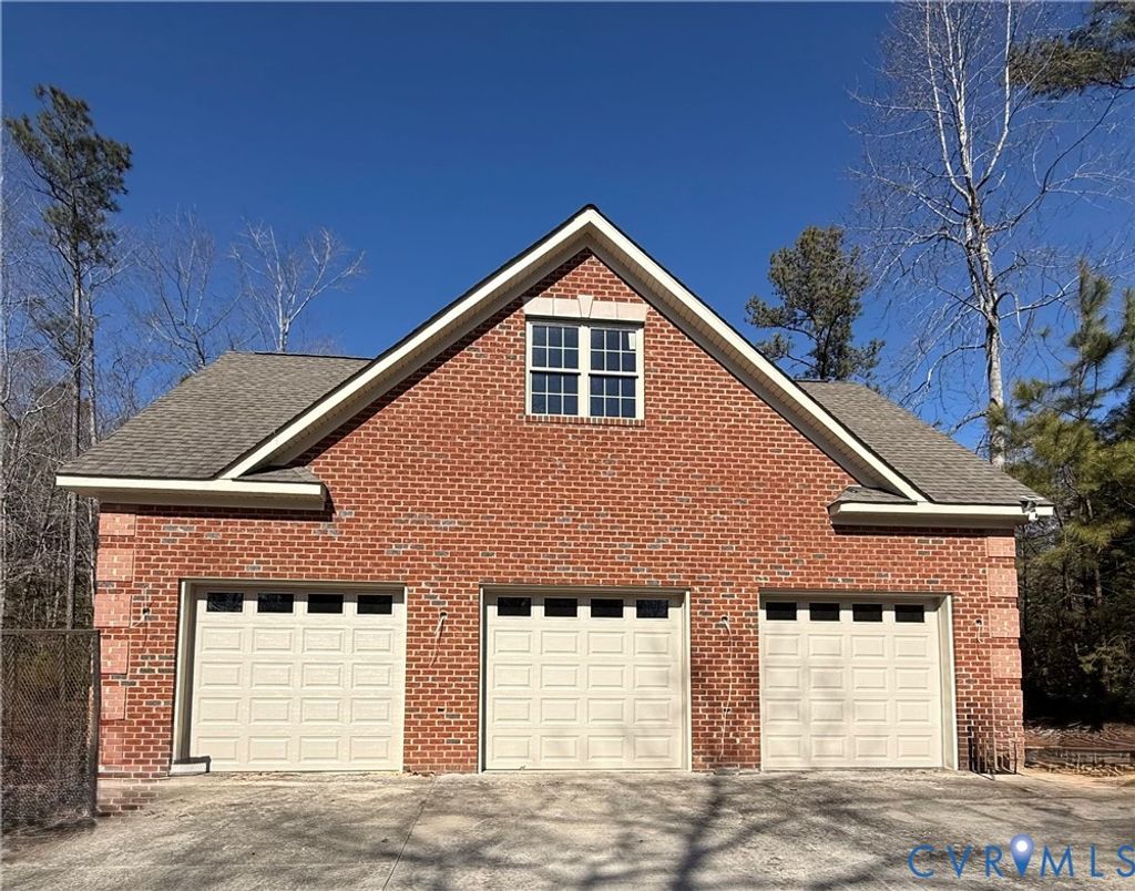 If you're looking for quiet living, welcome to this spacious brick home on 5 acres in Prince George. This home offers a split floor plan with 3 bedrooms and 2 1/2 baths. The private primary bedroom with en suite features double vanities, garden tub and a large walk in closet. The family room has a stone fireplace with gas logs, ceiling fan, recess lighting and French doors that leads to a screened in porch. The large kitchen with breakfast nook features lots of beautiful cabinets and counter space, gas stove, oven, microwave, dishwasher and more recess lighting. The large dining room is just perfect for family gatherings. In addition, there is a extra large room upstairs with lots of recess lighting for game room, office, etc. BONUS: Not only does this home have a 2 car attached garage, there is also a 3 car detached garage with high ceiling to accommodate a car lift if desired. This home has a lot to offer. Come take a look!