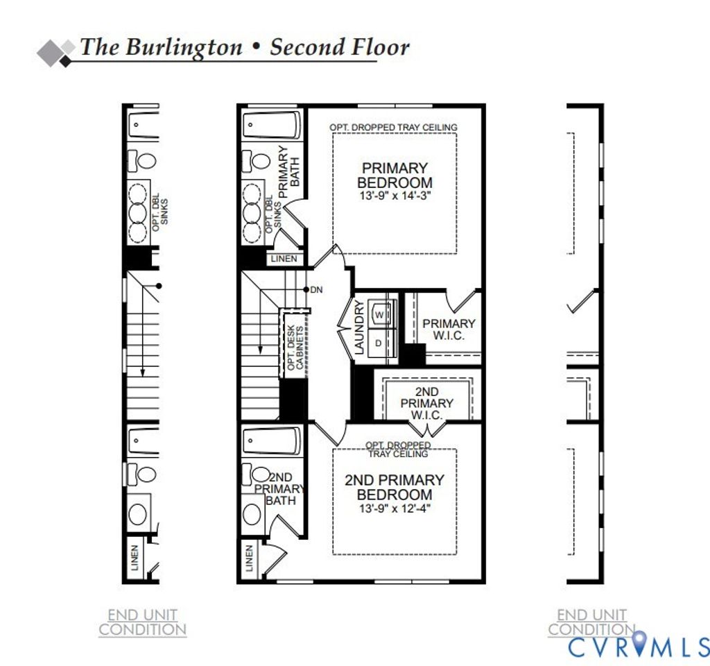 The Burlington is a two-story townhome with three bedrooms and 2.5 baths. This home features beautiful Cinnamon walnut EVP floor with rich color variation, paired with white perimeter cabinets and a dark Umber-toned island that pulls in the warmth of the flooring. White Bahamas Granite adds even more movement and character, complemented by a clean white backsplash. The bathrooms continue with darker stained cabinetry and polished chrome fixtures for a cohesive finish. Upon entering, you'll be greeted by a formal dining room directly off the foyer. The kitchen, featuring an island with a barstool area and a spacious pantry, is open to the family room. A powder room for guests completes the first floor. Upstairs, you'll find the private primary suite, featuring a walk-in closet and an ensuite bath with a walk-in shower. Bedrooms two and three, both with double door closets, share a full hall bath with tub/shower combo. A convenient hall laundry completes the second floor. Amenities in the community include a beautiful, state-of-the-art clubhouse with an Olympic-sized swimming pool, fitness center, and playground area for residents to enjoy!