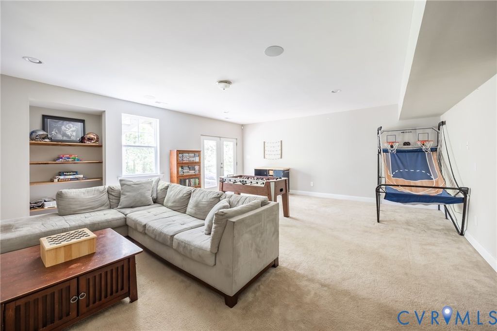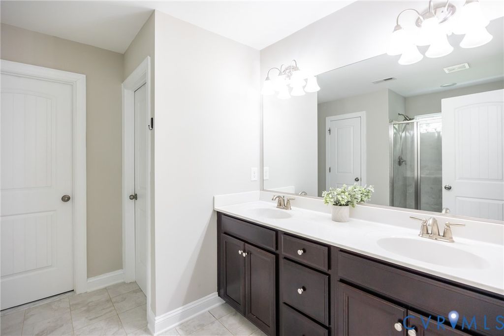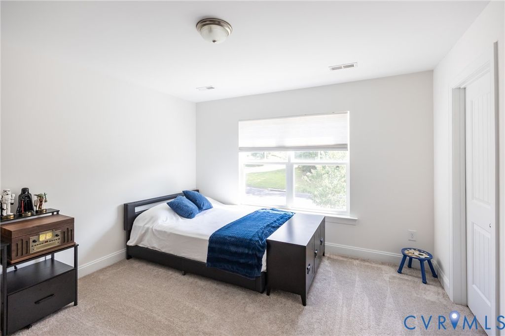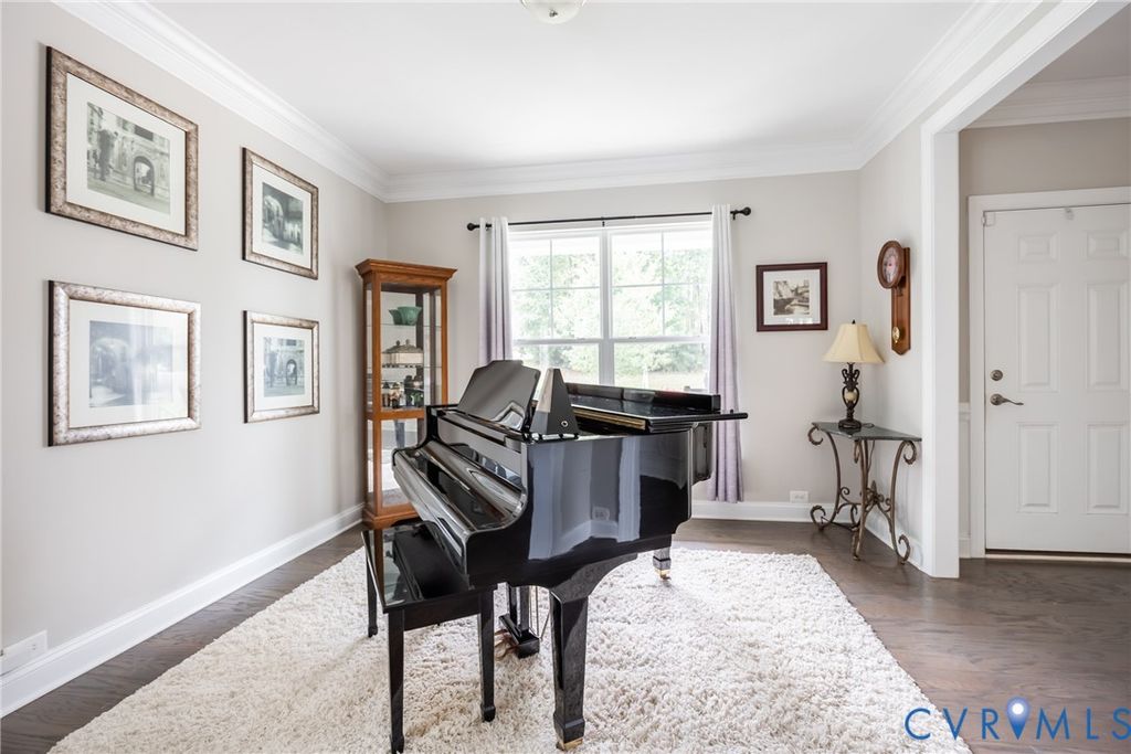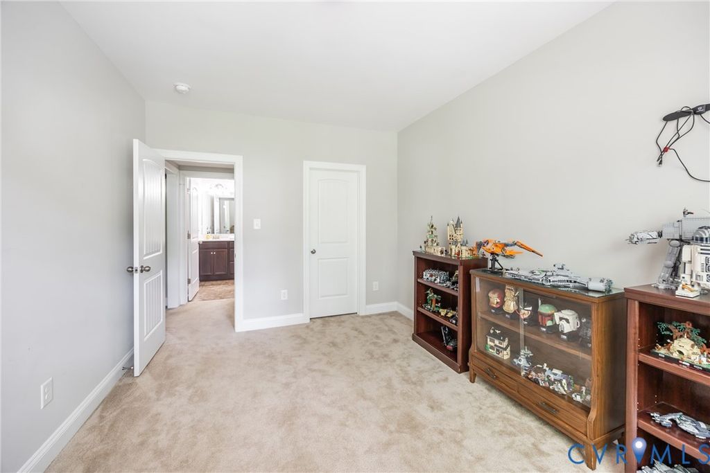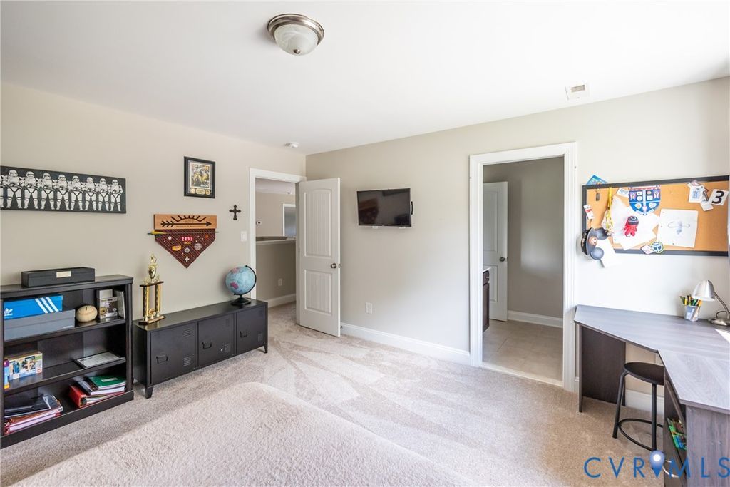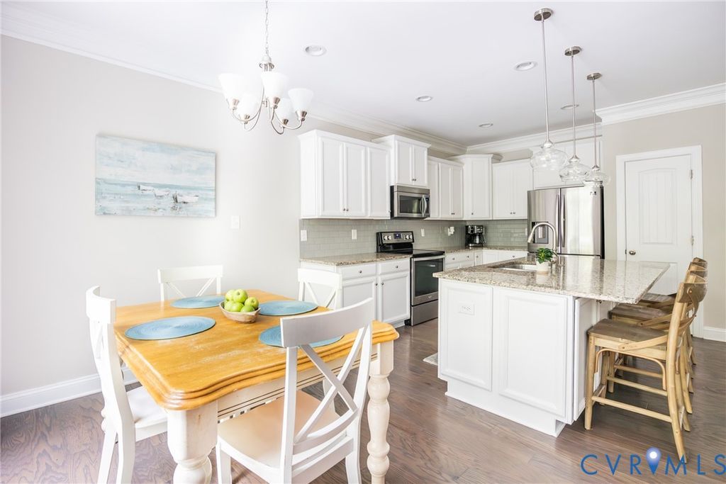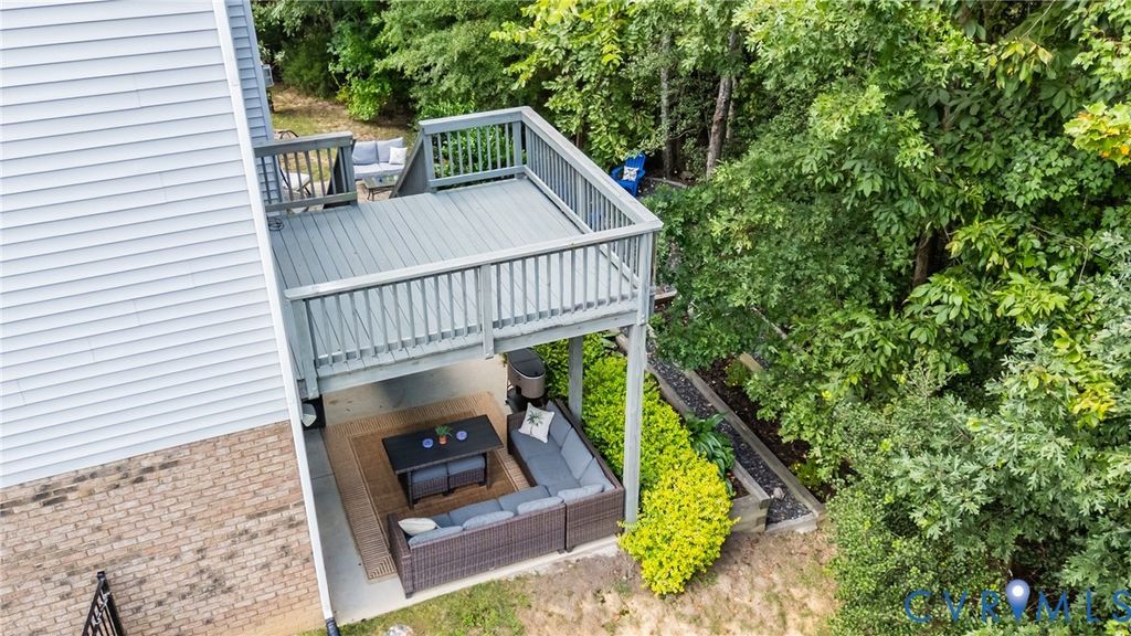 Perfect for large or multi-generational living, this move-in-ready Harper's Mill home offers exceptional space and flexibility with no wait for new construction. Located on a quiet cul-de-sac just minutes from Hull Street, this home features 5 bedrooms and 4 full bathrooms, including a first-floor bedroom and full bath, home office, upstairs bonus loft, and a fully finished walk-out basement. Enjoy morning coffee on the stone and concrete front porch overlooking a wooded common area. Inside, you'll find a formal living room or office, a spacious dining room ideal for holidays, and an open, light-filled family room with gas fireplace and custom woodwork. The chef's kitchen includes stainless steel appliances, granite countertops, subway tile backsplash, oversized island, and pendant lighting. The main level also offers a large mudroom with custom shelving just off the two-car garage with additional storage. Upstairs features a generous loft perfect for a kids' space, two spacious bedrooms with walk-in closets and a Jack-and-Jill bath, plus an impressive primary suite. The primary bedroom includes a sitting area ideal for an office or gym, an ensuite bath with dual vanities and walk-in shower, and a massive two-sided walk-in closet. An upstairs laundry room and game closet complete the second floor. The basement is an entertainer's dream with two large recreation rooms, custom shelving, surround sound with built-in Bluetooth speakers, a bedroom and full bath, and oversized unfinished storage. Walk out to a patio overlooking a large fenced yard, fire pit, wooded privacy, and peaceful creek. Recent updates include a brand-new hot water heater, new second-floor carpet, and fresh paint. Convenient to shopping, schools, neighborhood pool, and trails"”this home truly checks every box.