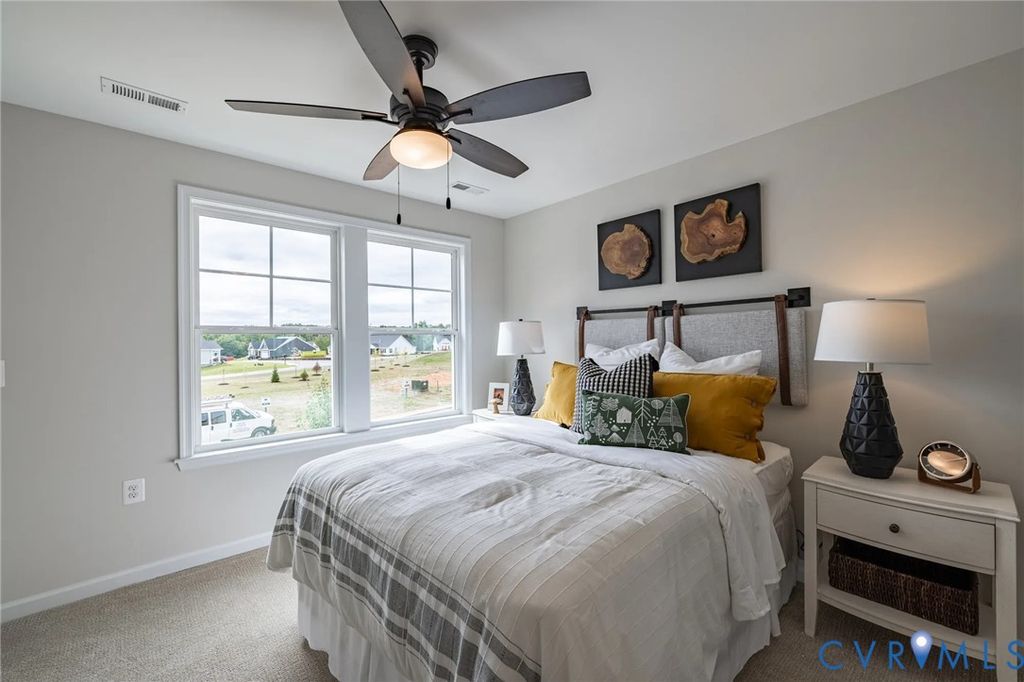 This home is MOVE-IN READY! The Madison plan offers three bedrooms, 2.5 baths, and a two-car front-load garage. Beautiful and durable LVP flooring flows throughout the first-floor main living areas. As you enter, you'll find a home office space tucked off the foyer. The heart of the home is the spacious kitchen, featuring a large center island, quartz countertops, a tile backsplash, a spacious pantry, and stainless steel appliances, including a wall oven/microwave, cooktop with range hood, and fridge. The adjoining dining area features a chandelier and provides the perfect space for everyday living and entertaining. Natural light pours into the great room, featuring a gas fireplace, from several large windows overlooking the covered patio. Tucked at the back of the home is the FIRST-FLOOR primary suite featuring a spacious walk-in closet, a tray ceiling, and an ensuite LUXURY bath with a curbless walk-in shower and a double vanity. A powder room for guests and a spacious laundry room complete the first floor. Upstairs, you'll find a spacious loft area. Bedrooms two and three both feature walk-in closets and share a Jack & Jill bath with separate vanities. An unfinished storage area completes the second floor. Enjoy low-maintenance living just minutes from downtown Charlottesville in this gated community! All lawn maintenance is taken care of by the community, allowing you free time to pursue your passions and enjoy all of the amazing amenities this community has to offer: a community pool, walking/biking trails, a clubhouse, a fitness center, and sports courts, including both tennis and pickleball. Enjoy close proximity to the Spring Creek Golf Course that flows throughout the community and access to The Tavern on the Green Restaurant that offers indoor and outdoor dining. Offering 24/7 security and an active community, Spring Creek is the home you've been looking for!