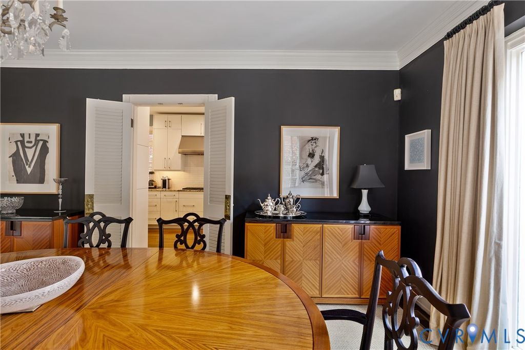 Built in 1915 for a principal of the Morgan Brothers Bag Company and designed by noted Richmond architect Duncan Lee, this distinguished residence blends classical European influence with timeless architectural detail. Originally offering three bedrooms, three-and-a-half baths, the home has been thoughtfully preserved and enhanced over the years. In 1970, a subsequent owner modernized the façade while maintaining the original floor plan, and in 2000 the exterior was restored to better reflect the architect's original intent, with the interior reconfigured to create the dramatic two-story foyer and the installation of the historic Jefferson Hotel chandelier (circa late 1800s) as a striking focal point. The current owners have elevated the home with a beautifully expanded primary suite, a full kitchen renovation, a custom bar addition, renovation of all three upstairs baths, primary suite laundry integration, and custom cabinetry throughout the kitchen and baths, all executed by Kitchen Design Works. Original architectural plans dating to 1915 are preserved and available. Featured on the Virginia Home and Garden Tour and included in a respected book documenting Richmond's distinguished architecture, this is a rare opportunity to own a significant piece of the city's history, seamlessly combining architectural pedigree with refined modern living.