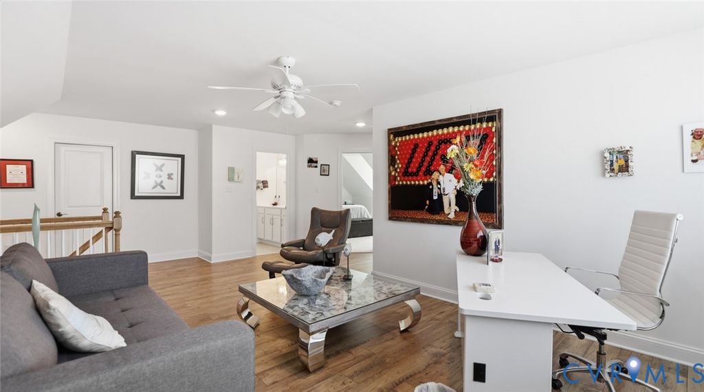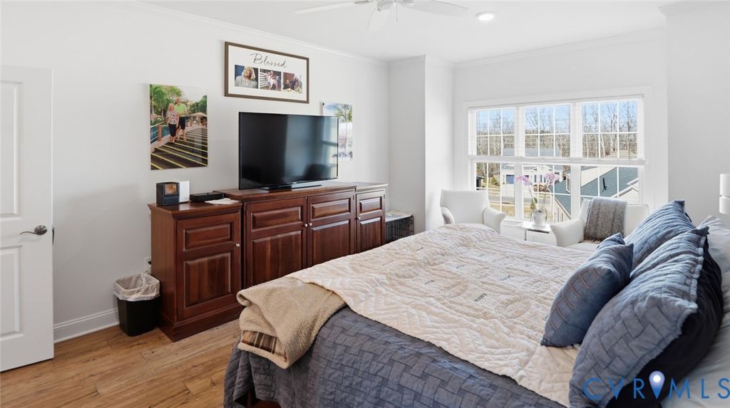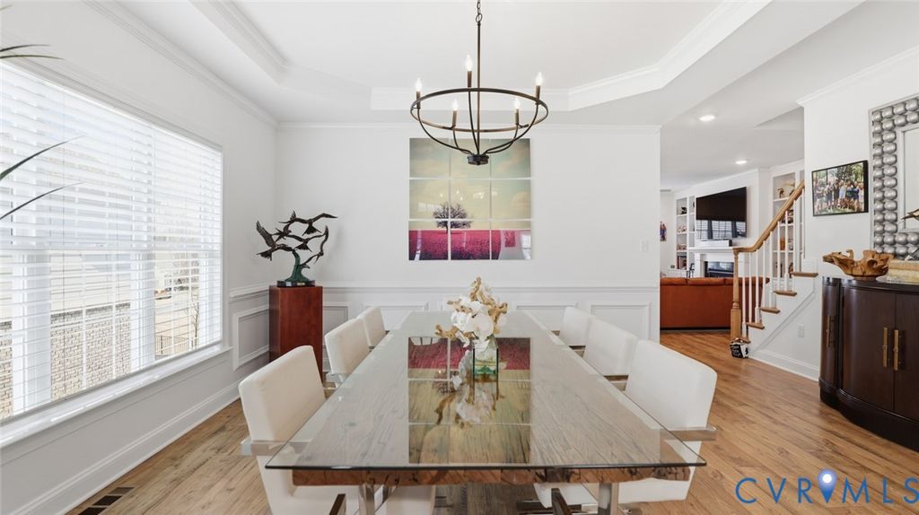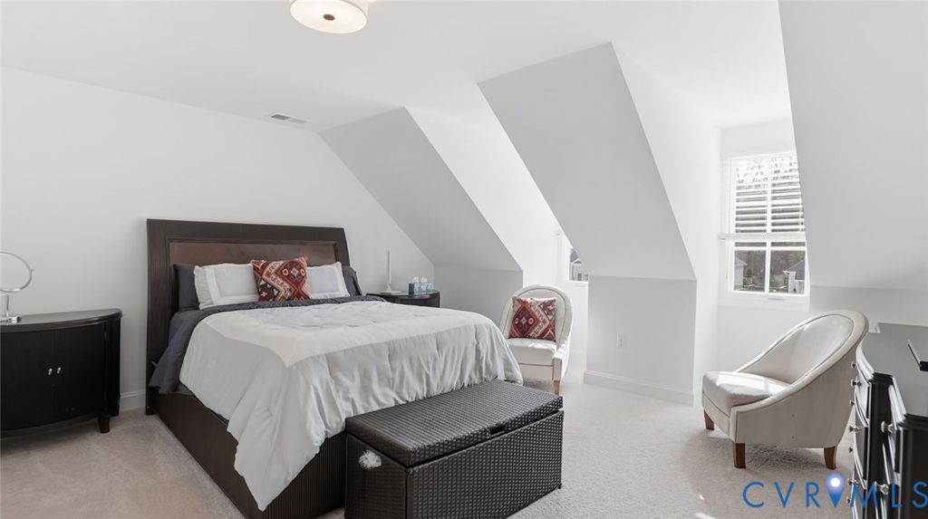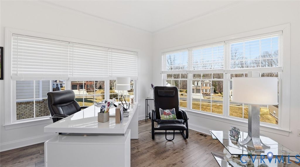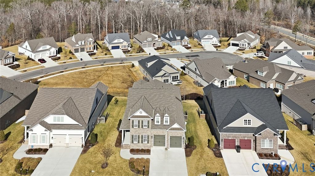 Welcome to the Ashmont model built by Boone homes in 2023 located in the 55+ community of Mosaic at West Creek. Inviting entry foyer features custom built-in bookcases and opens directly to the formal dining room with tray ceiling, crown and picture frame chair molding. LVP Flooring extends throughout the living areas. A designated office or formal living room sits just off the foyer. Fantastic open kitchen with large island with bar seating, farmhouse sink, quartz countertops, white cabinetry, subway tile backsplash, stainless steel appliances, gas range with hooded vent, wall oven and microwave. The kitchen opens to the living room making for great entertaining and includes gas fireplace and built-in backlit bookcases. The adjacent breakfast nook leads to a sunroom overlooking the backyard and provides access to the deck. The first-floor owner's suite includes two walk-in closets, and an ensuite bath with subway-tiled walk-in shower with bench, ceramic tile flooring, double vanity, and private toilet room, direct access to spacious laundry room with additional cabinetry and closet and a secondary access. Half bath with a pedestal sink completes the main level. Upstairs includes a large loft, two additional good size bedrooms, and a full bath with oversized vanity and tub/shower combination perfect for guests. Special features include 3415 sqft, a two-car front-entry garage, huge walk-in attic (25 x 36) with plenty of room for storage, Brick and Hardiplank siding, encapsulated crawl space, and dual-zone TRANE HVAC including Air filtration and purification system added 2025. Mosaic at West Creek offers a 10,000-square-foot clubhouse, fitness center with yoga studio, salt-treated pool and hot tub, pickleball and bocce courts, bark park, and over nine miles of walking trails. Conveniently located just minutes off interstate 288, Short Pump shopping, dining, medical, and financial services. Love where you live!
