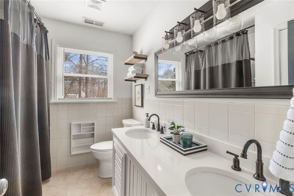Welcome to this inviting tri-level home in sought-after Bon Air Terrace. This home boasts nearly 2,000 sq. ft. of flexible, well-designed living space. The main level features a dining (or living) area opens to the remodeled kitchen, ideal for everyday meals and entertaining. The kitchen shines with recessed lighting, soft-close cabinetry, SS appliances, pendant lights, Swiss granite countertops, and a stylish dry bar area with wine rack and beverage refrigerator. Just beyond, the living room offers new carpet, built-in shelving, and direct access to the back deck"”creating easy indoor-outdoor flow. Upstairs, find three bedrooms with hardwood floors and a remodeled full hall bath (2022) featuring a double vanity, quartz countertop, and linen closet. The lower level offers a spacious family room featuring fresh paint, LVP and a cozy gas fireplace. The flex room provides the perfect space for a home office, study, or playroom, complemented by a convenient half bath. Outside, enjoy a flat, fully fenced rear yard with a newer deck (2019), perfect for entertaining, pets, and play. Additional updates include a brand-new roof (2025) with a transferable warranty. Fireplace, chimney, flue and shed convey 'as is'. Electric baseboards convey 'as is', currently disconnected and non-working but can be reconnected if desired.