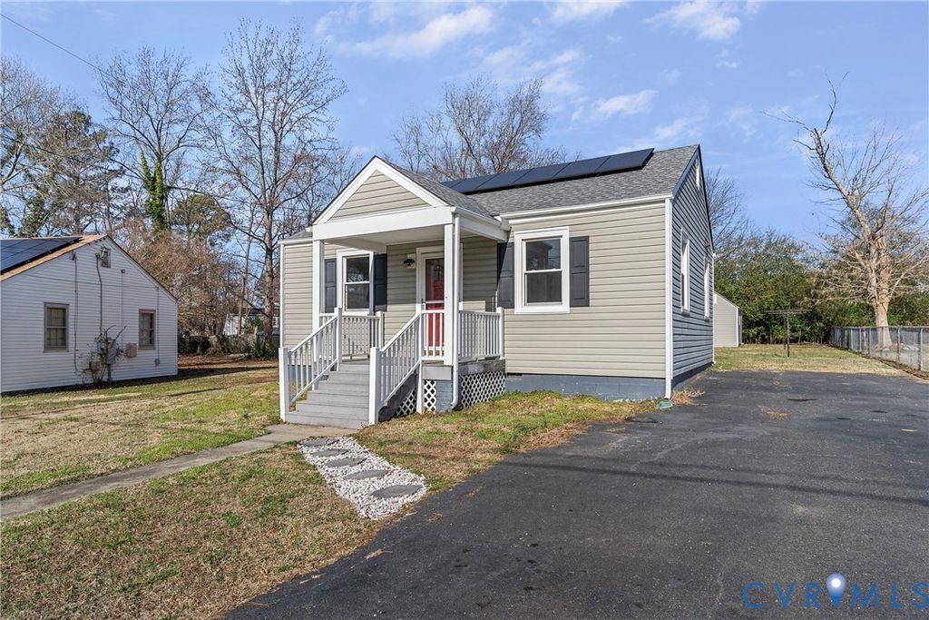 Cute as a button ranch-style home in a prime location! This move-in ready gem is perfect for a first-time homebuyer or an investor looking to add a solid property to their rental portfolio all at a great price point! Enjoy low-maintenance living with vinyl siding and a welcoming front porch featuring composite decking. Inside, the home has been completely repainted and upgraded with new luxury vinyl plank flooring throughout, creating a fresh and cohesive look. The cozy living room offers comfortable living space that flows nicely into the updated kitchen. The kitchen features granite countertops with tile backsplash, cherry-style cabinetry, glass-top range, dishwasher, refrigerator, over/under washer and dryer, and tile flooring"”everything you need is already in place. The full bathroom has been beautifully updated with tiled walls and flooring. A major bonus: paid-off solar panels installed in 2018, providing significant energy savings for the next owner. Outside, you'll find an expansive lot with a back porch perfect for spring entertaining, a detached shed for extra storage, and a paved driveway. A charming, efficient home with thoughtful updates"”don't miss this one!