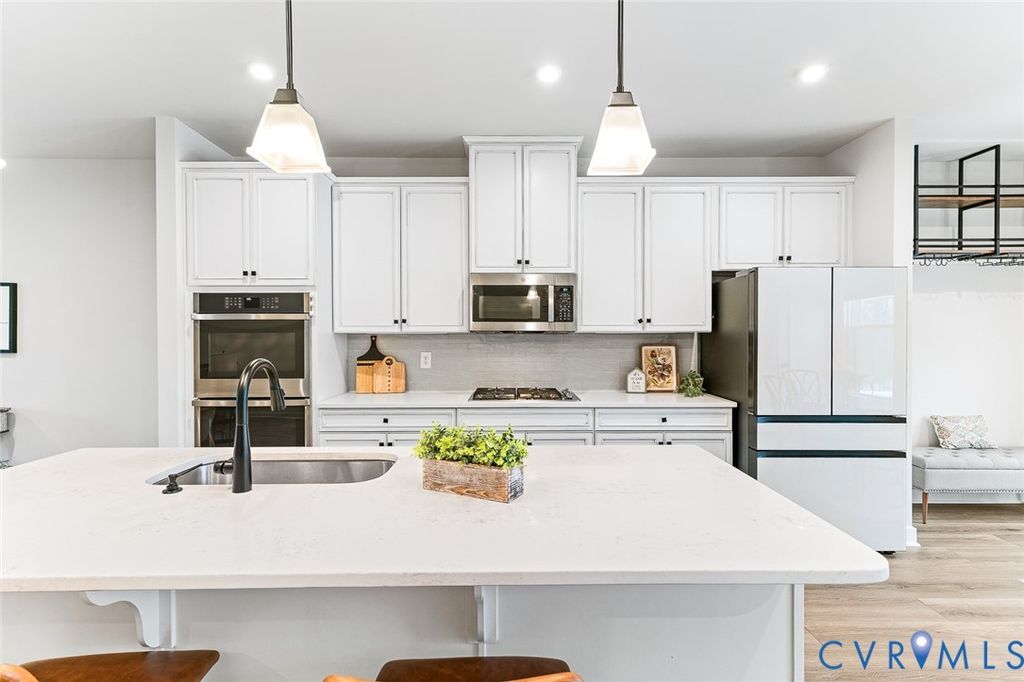 Stunning Brick Townhome in the heart of Midlothian at Centerpointe! Easy low maintenance community- this 4 bedrooms + 3.5 bath home is priced to sell! From the LVP throughout first and second floors, to the stunning open kitchen with quartz and stainless steel appliances, to the covered porch/lanai with modern gas fireplace and 3 seasons shade- this home has lots of upgrades! Refrigerator, washer and dryer convey so all you have to do is move in! Third floor features additional 3 bedrooms and 2 full baths and ample storage closets. Bathrooms are upgraded with modern hardware and finishes! The community has great amenities like walking trails and a clubhouse with a fitness center and work from home station, as well as a full kitchen and bar to host your family or friends! Several restaurants to come, daycare, dental offices & middle school all within walking distance. New Midlothian Library close by as well as YMCA! Easy commute to downtown and all within Midlothian High district!