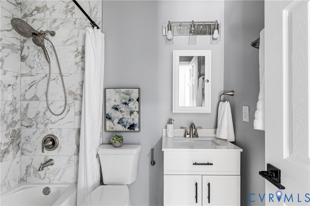 Welcome to "the one"! This two story traditional home boasts COUNTLESS fresh updates, like ALL NEW roof, deck, windows, kitchen, baths, systems, and more. You'll love the primary suite with its massive double vanity private bathroom, and walk-in closet. Enjoy a finished direct-entry garage too. Cook out, relax, and entertain in the spacious backyard complete with deck and fence. Poised in a quiet cul-de-sac, the home's fantastic location is just minutes from shopping, entertainment, dining, and all that Midlothian/Chesterfield life has to offer. Fresh flooring, paint, light fixtures, doors, foor to ceiling marbled tile, and so much more awaits in this tastefully renovated property. Don't wait to see it in person, schedule your showing today and make this gem your own.