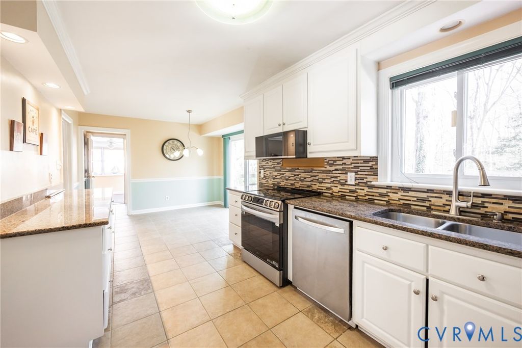 Beat the spring market and get in to this dream home now! This stately brick Colonial boasts 5 bedrooms, 4 bathrooms, and a fully finished walk out basement. With a brand new roof, new appliances, whole house generator, and fresh paint this beautifully maintained home is perfect for multi-generational or large families looking for extra space. You will love mornings on the front porch overlooking the quiet tree-lined cul-de-sac. Once inside, the oversized living room and adjascent family room with built-ins and cozy fireplace welcome you, while the dining room has space for all for the holidays! Everyone will want to gather around the open and bright kitchen with granite countertops, backsplash, stainless steel appliances and huge coffee bar. Upstairs you will be wowed by 4 generously sized bedrooms and closet space, hall bath with large soaker tub, and primary bedroom with en-suite bathroom. Full walkout basement with bedroom and full bath perfect for in-law suite, college kid space, media room, or gym! The Florida room steals the show with three sides of windows to enjoy the wooded backyard views, making it the perfect office or sitting room for your morning coffee or evening unwind. Garage is a handyman's dream with storage and built-in shelving, and an additional outdoor storage room holds all your bikes and outdoor toys. Enjoy the private wooded backyard while entertaining on the desk and lower patio space. A full house generator keeps everything running no matter what Mother Nature brings! All this conveniently located minutes from Hull St, 288, Chippenham, Powhite, downtown, schools, Pocahontas State Park, and all the shopping and restaurants of Chesterfield. Under $500,000 for all this space, come call this beauty yours!