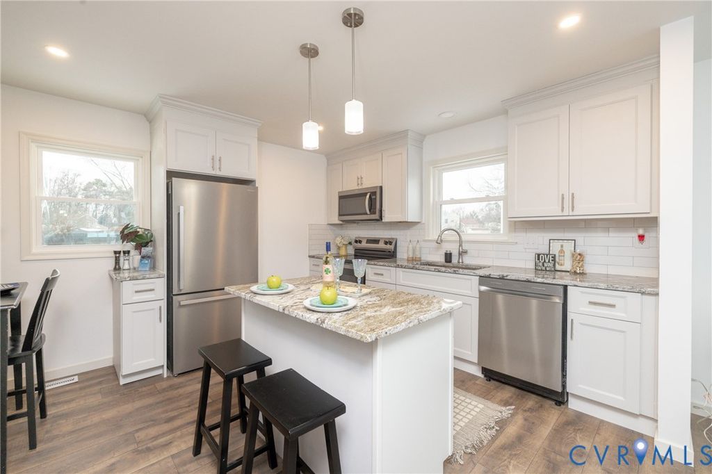 Welcome home to this beautifully renovated 3 bedroom, 2 bath tri-level in Eastern Henrico, offering 1,544 sq ft of comfortable, family-friendly living space. The thoughtful layout includes two separate family room areas, perfect for movie nights, play space, or a home office, along with an open kitchen ideal for gathering and everyday living. Recent updates include a new roof, new hot water heater, newer windows, updated HVAC, new flooring, fresh paint, new cabinets, and new countertops. Move-in ready and designed with room to grow"”this is a home where memories are made. Minutes away from shopping, Henrico County Recs and Parks and library!