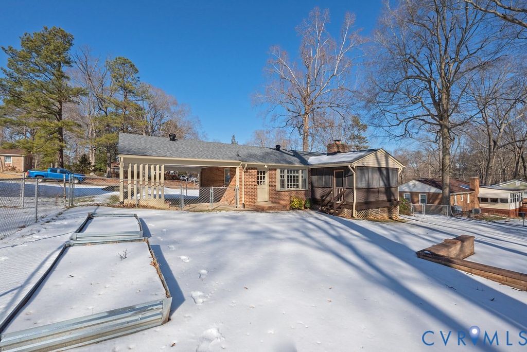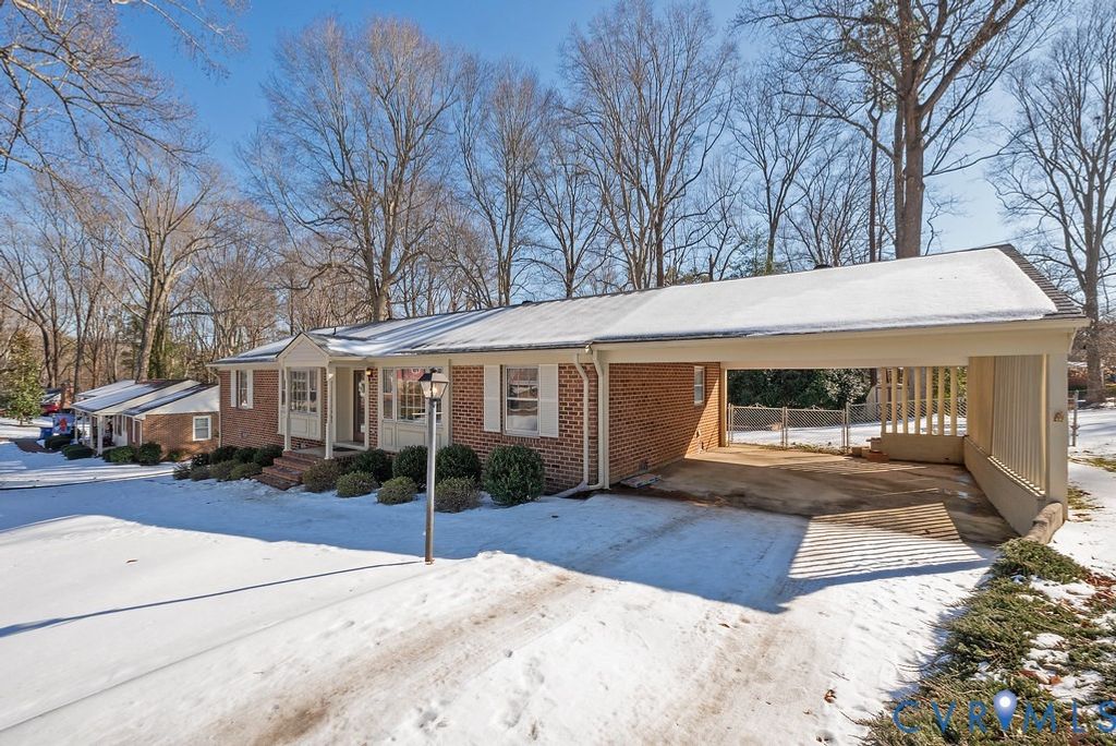 Forget the candy and flowers this year, how about investing in a home you can love 24/7!!! This timeless 3-bedroom, one and a half bath all-brick rancher perfectly blends strength and classic charm and is topped off with a BRAND NEW ROOF 1/26!!!! Step inside to a sun-drenched great room anchored by a beautiful bay window and gleaming wood floors with spacious dining area, flowing seamlessly into the ample kitchen with all appliances to convey. The heart of the home features an inviting family room centered around a cozy brick fireplace, complete with door to step into a spacious screened porch, offering a seamless transition for relaxing or dining al fresco overlooking your expansive, fully fenced backyard with lush landscaping. The primary suite boasts hardwood floors and a private half-bath, while two additional bedrooms enjoy easy access to the updated full hall bath! Organization is key with a dedicated laundry and mudroom! Don't let the ice and snow slow you down, because there won't be any need to take the time to scrape your car since you're parked under a large DOUBLE CARPORT!!! As you can see, this one has it all, so come and fall in love!!!!!!!
