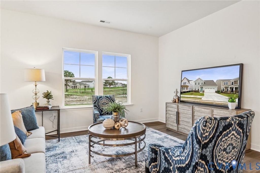 BUILD WITH US - MEET THE MAXWELL! The Maxwell Designer Home boasts a first-floor primary suite and flex spaces on both levels, situated on a wonderful cul-de-sac homesite! As you enter through the foyer, a wonderful flex space with optional french doors welcomes you. Use this space as a formal dining room, productive home office or however best fits your lifestyle. Option for a first-floor guest bedroom is available! The chef's kitchen has a center island for prep and oversized walk-in corner pantry. The kitchen overlooks the dining area and family room creating a perfect space for entertaining and everyday living. The first-floor Primary Suite has a large walk-in closet and private bath with double vanity and walk-in shower. A laundry room is conveniently located just outside your Primary Suite. Upstairs, you'll find a flexible loft space, two additional bedrooms and full bath with optional double vanity. ACT SOON! Purchaser may select additional structural and design options! The Maxwell offers these additional options: 4th bedroom and morning room or covered/screen porch. Nestled on spacious, wooded homesites, Qualla Trace offers a tranquil setting with easy access to Hull Street Road and Iron Bridge Road for dining, shopping, and entertainment. Enjoy stress-free commutes with convenient routes to Route 1, the U.S. Defense Supply Center and 288, making it simple to navigate the Richmond metro area. (Home is not built - Photos & visual tour are from builder's library & shown as an example only. Features & options will vary).