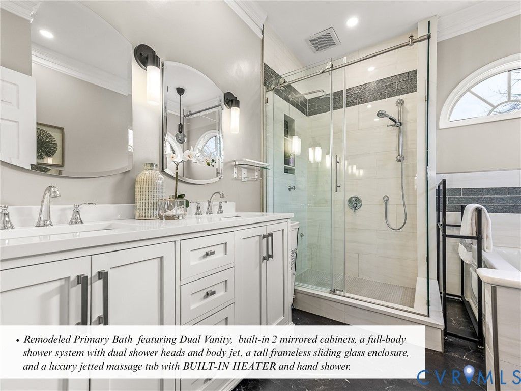 This STATELY BRICK HOME welcomes you with a charming front porch and inviting curb appeal framed by flower beds full of seasonal surprises.. Inside, FRESH PAINT, CROWN MOLDING THROUGHOUT, DIMMABLE LED RECESSED LIGHTING with RELAX MODE, a WHOLE-HOME WATER FILTRATION SYSTEM and NEWER LVP FLOORING installed OVER ORIGINAL HARDWOOD FLOORS throughout the first floor. A true highlight is the FIRST-FLOOR PRIMARY SUITE, featuring a TRAY CEILING WITH LED ACCENT LIGHTING, CUSTOM CROWN MOLDING, a REMODELED SPA-STYLE BATH, and a WALK-IN CLOSET WITH ELEGANT BUILT-IN ORGANIZERS. The REMODELED PRIMARY BATH includes a DUAL VANITY, BUILT-IN MIRRORED MEDICINE CABINETS, a FULL-BODY SHOWER SYSTEM WITH DUAL SHOWER HEADS AND BODY JETS, a TALL FRAMELESS SLIDING GLASS ENCLOSURE with spot-free coating, and a LUXURY JETTED MASSAGE TUB WITH BUILT-IN HEATER AND HAND SHOWER. The OPEN-CONCEPT FAMILY ROOM offers chair rail & wainscoting, custom CROWN MOLDING and a cozy gas fireplace. The kitchen includes NEW GRANITE COUNTERTOPS, fresh paint, soft-closed cabinetry, pantry, and a NEWER INDUCTION STOVE (gas or electric accessible). A bright BAY-WINDOW BREAKFAST NOOK and NEWER SLIDING PATIO DOOR lead to a deck with GAZEBO, complete with CEILING FAN and Mosquito Mash Screen - plus 12 ft cascading stairs LEADING TO an adjacent patio that matches the sidewalk. Upstairs has FOUR ADDITIONAL BEDROOMS, SEVERAL WITH ADDITIONAL CLOSETS, 2 FULL BATHS, a versatile LOFT SPACE with access to landing overlooking balcony, and an additional room with fireplace. Outside, a BEAUTIFULLY MAINTAINED YARD AND GARDEN with DEDICATED GARDEN IRRIGATION, a CUSTOM-BUILT SHED WITH ELECTRICAL CONDUIT (in place), a Completely NEW EXPANDED 50'-wide DRIVEWAY accommodating 8+ CARS, OUTDOOR CUSTOM LIGHTING, an oversized 3-CAR GARAGE with 30'x8' overhead STORAGE with pull down stairs and ADDITONAL BUILT-IN WALL STORAGE, and a fully ENCAPSULATED CRAWL SPACE with CLOSED-CELL SPRAY FOAM THOUGHOUT FOUNDATION. HOMES WITH THIS LAYOUT, CONDITION, AND LOCATION ARE RARE.