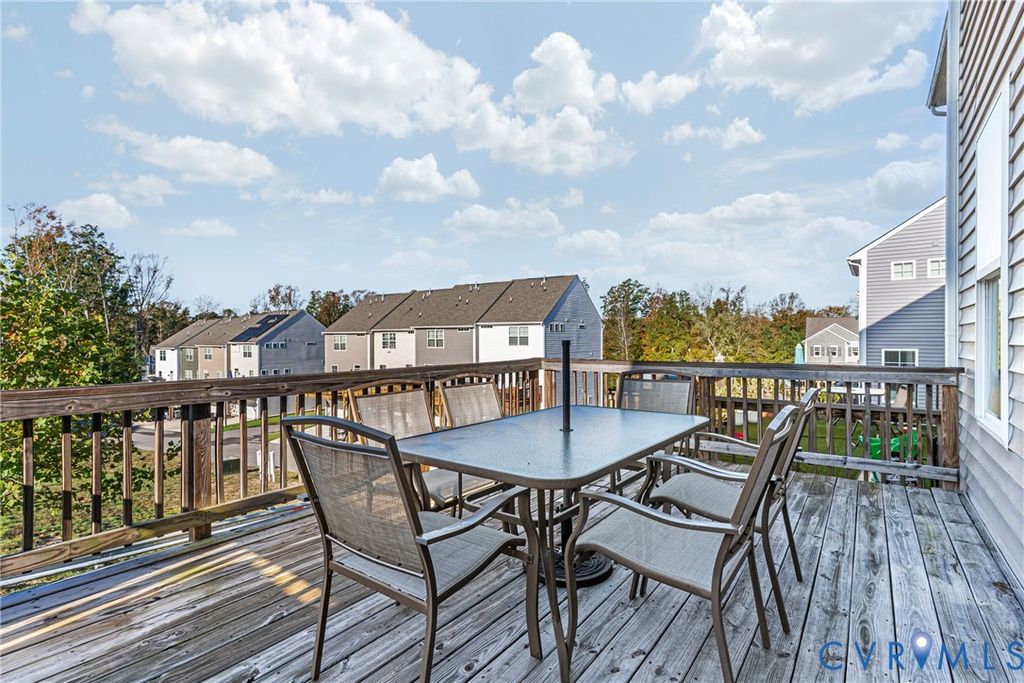 Welcome Home! This 2020, Former Eastwood Homes Model with all of the upgrades awaits your visit. Take note of the architecture, the sidewalks and treelined streets, greenspace, a pond with fountain and gazebo, are just a few common amenities as you take note of where this home is located. The first floor features a private bedroom with a full bath, ideal for guests, a home office, or playroom. Upstairs, the second floor welcomes you with an open-concept layout that connects the living, dining, and kitchen areas, creating a bright and airy space that's perfect for both everyday living and entertaining. Crown molding and hardwood floors are found throughout this level. The kitchen shines with quartz countertops, stainless steel appliances, and a large island that flows seamlessly into the inviting living area. The storage is fantastic with multiple closets and a pantry. There is a powder room on this level too. Off of the living room, step out onto your private, oversized deck. The upstairs level offers 3 spacious bedrooms; one is the private master en-suite with a double vanity bathroom and oversized tiled shower with glass door. The other two bedrooms offer privacy, and a second bathroom with tub/shower. More storage can be found in the pull-down attic. The garage offers parking, and there is parking in your driveway in the back; there are built in cabinets for a workshop in here too. Enjoy low-maintenance living in a vibrant community featuring and outdoor pool and 3-lane indoor pool, multiple playgrounds, clubhouse, fitness center, splash pad, tennis courts, soccer field and more. Conveniently located near shopping, dining, and top-rated schools, this home truly captures the best of FoxCreek living.