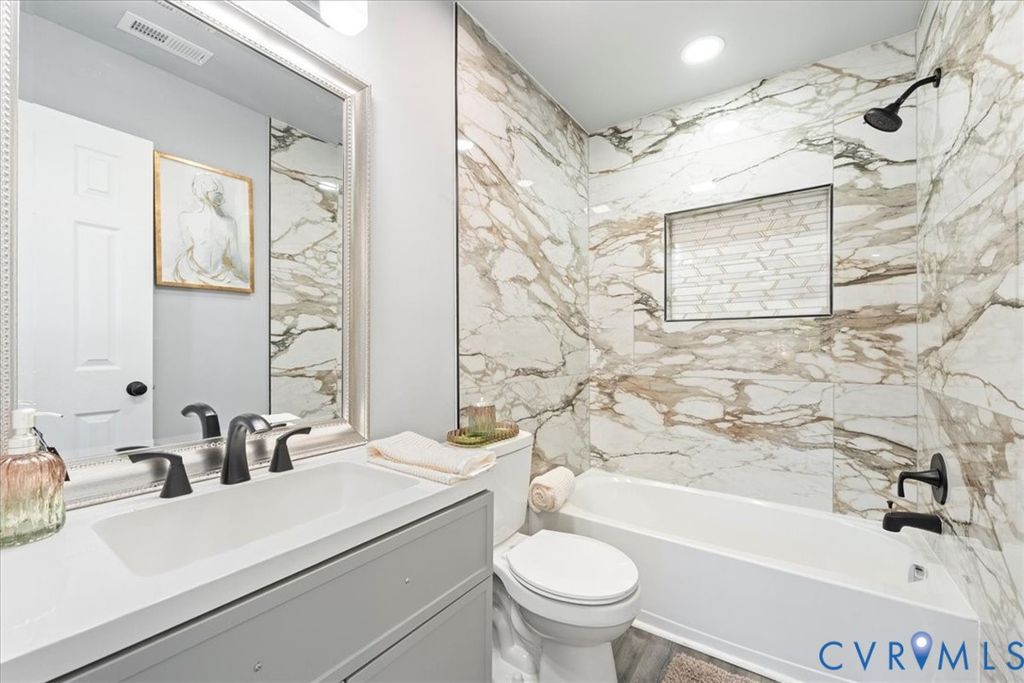 Welcome to 217 S South St, Petersburg, VA 23803 "” a beautifully crafted new construction home designed for modern living and maximum comfort. This thoughtfully planned residence offers a rare and highly desirable layout featuring 3 private primary suites and 3.5 bathrooms, ideal for multi-generational living, guests, or anyone who values space and privacy. The main-level primary suite provides convenient first-floor living, while a powder room for guests adds everyday functionality. Upstairs, you'll find two additional primary suites, each complete with its own full bathroom"”creating a perfect balance of comfort and separation. With approximately 1,600 sq. ft. of contemporary living space, this home features an open-concept design, stylish designer finishes, durable luxury vinyl plank flooring, and a sleek kitchen equipped with quartz countertops and stainless-steel appliances. Enjoy the inviting front porch, paved driveway, and a location convenient to local shops, dining, and major routes. A standout opportunity to own a new construction home with three true suites"”schedule your private showing today!