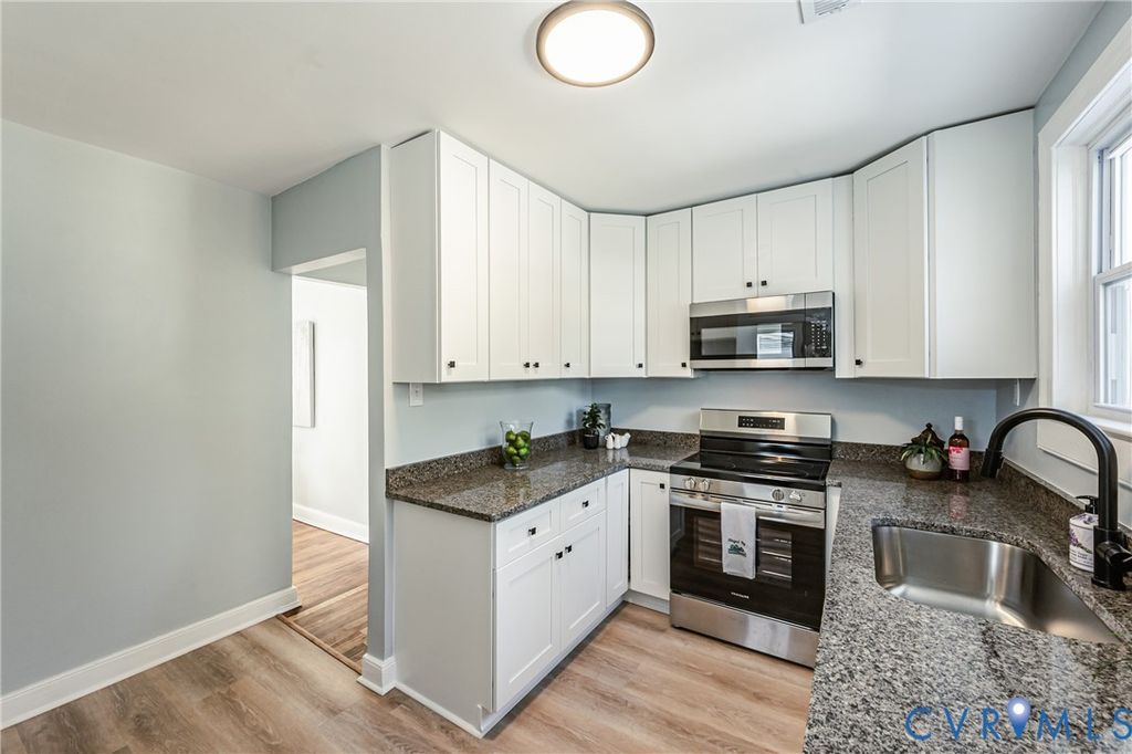 Welcome home to this beautifully updated and move-in ready property featuring bright, open living spaces, hardwood floors, and neutral finishes throughout. Designed for both comfort and functionality, this home offers a layout that fits today's lifestyle. The spacious living room flows seamlessly into the dining area and updated kitchen, making it ideal for everyday living and entertaining. The kitchen features white cabinetry, ample counter space, modern appliances, and an efficient design that makes meal prep easy. A sunroom provides valuable flexible space, perfect for a home office, workout area, or relaxing retreat. Well-sized bedrooms offer generous natural light and closet space, while the refreshed bathroom features clean, modern finishes. Outside, enjoy a level yard with room for gardening, outdoor gatherings, or entertaining, along with a detached storage shed for added storage. Conveniently located near major highways, shopping, dining, and everyday amenities, this home offers an easy commute and quick access to regional destinations. Thoughtful updates, a practical layout, and manageable size create an excellent opportunity to build long-term value and enjoy low-maintenance living.