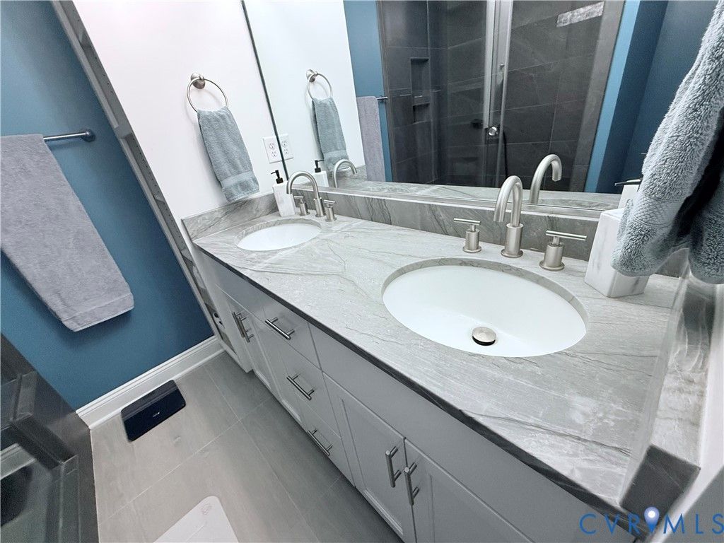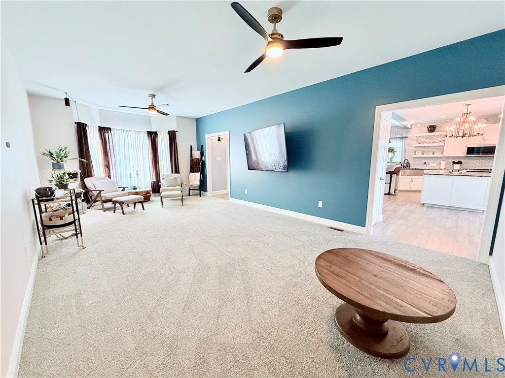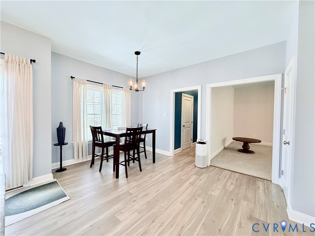 Check out this completely custom, upgraded throughout Balducci home, with some bonus owner twists along the way! This four-bedroom home is located right off 360 in the heart of Mechanicsville convenient to shopping, dining, entertainment, and all the supporting amenities the town has to offer. Interstate access is only minutes away for 295, 64, 95, 895 and more! This home features luxury vinyl plank flooring throughout the living room, kitchen and dining room all with the open floor concept perfect for entertaining. In the living room you will find an electric 54" linear wall fireplace allowing for the perfect ambiance no matter the occasion! The kitchen has tons of upgrades including the leathered marble counters, oversized island, elevated bar seating, deep farm sink, beveled glass kitchen backsplash and stainless-steel appliances. Off the kitchen you will find the designated dining corner leading to the rear deck or into a hall with the half bath with leathered granite vanity top, laundry and exit into the garage. The family room is very spacious with plush carpet, two fan/light combos and endless decorating opportunities with an extra bump out space from the bay window. Upstairs you will find the primary suite, office/study, and three other bedrooms. The primary suite offers fan/light combo, walk-in-closet and a completely custom bathroom with large format ceramic tiled flooring, a tile shower fit for a luxury hotel and a leathered quartzite double sink vanity. The study/suite is located just beyond the primary suite allowing for endless possibilities to suit anyone's needs. The hall bathroom also has been customized with a large format ceramic tile flooring, tiled shower, leathered quartzite double vanity and plenty of built in storage space. Each of the additional bedrooms feature carpet flooring, fan/light combos and spacious double door closets too! All appliances are negotiable, including the Samsung all-in-one washer/dryer unit. The exterior offers an outdoor sprinkler system and so much more!