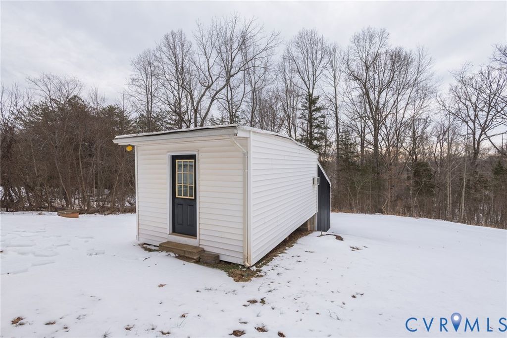 If peace and quiet is what you are dreaming of than this is the home and property you are looking for. Situated on 5.28 acres in Buckingham County. This home offers 2 Bedrooms with a flex room that can be used as an additional 3rd Bedroom or office space and 2 Full Baths. Upon entering the home you'll appreciate the character this home holds with a massive Great Room with recessed lighting, skylights, and bar that can be used for entertainment purposes or a breakfast nook area, plenty of space for a kitchen table. This space offers lots of space for entertaining your guests. A spacious kitchen with Laminate Countertops, back splash, and ample cabinet space. A separate laundry room with a large countertop, perfect for folding your clothes and storage space. The cozy Primary bedroom offers vinyl flooring, ceiling fan, and attached bath with a Jetted soak tub, standalone shower, and tile floors. There is an additional room that can be used as a 3rd Bedrooms or flex space with a private entrance. If a garage is what you desire than you have found IT! A large 30x34 - 3 car garage with 12ft ceilings, with electric along with a detached shed perfect for storage also with electric. You'll appreciate the tranquility and serenity of this property and the meticulously maintained home that is move in ready when you visit.