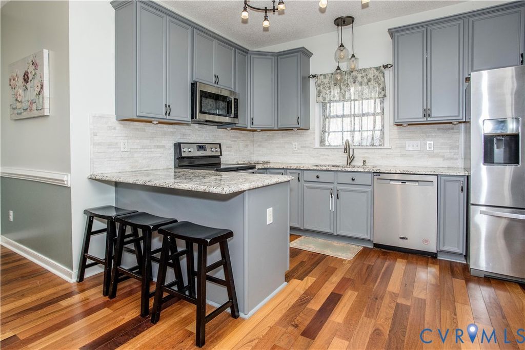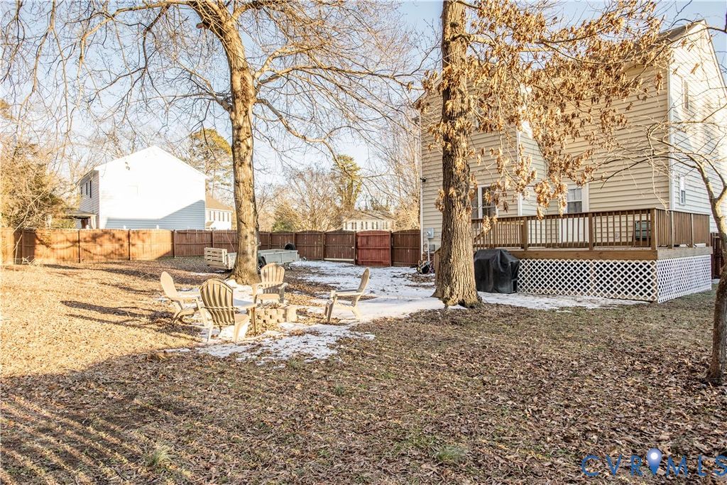 Beautifully Maintained Home with SEVERAL UPDATES!! This home greets you with a Ceramic Tile entryway and Engineered Hardwood flooring throughout entire first floor. New paint throughout. Lower level offers an open floor plan with 9ft ceilings. You will be welcomed by a cozy living room with gas fireplace, an elegant dining room with crown molding/chair rail, half bath, and a laundry room. On the upper level of the home you will find a beautiful master bedroom with master bath, with large walk in closets. 2 more spacious bedrooms and another full bath. Enjoy outdoor family time on the newer back deck with the large Fenced in back yard! There is generator hookup as well. All appliances convey. Great location on a cul-de-sac road, minutes from shopping, Restaurants, and VA-288! Act fast this one will not last!!