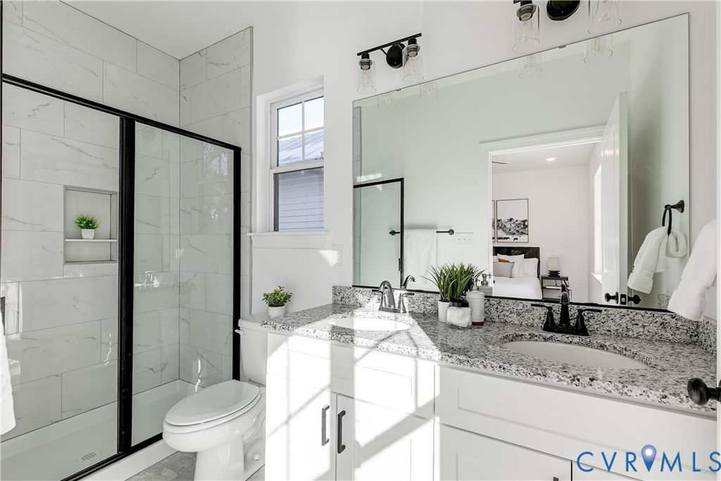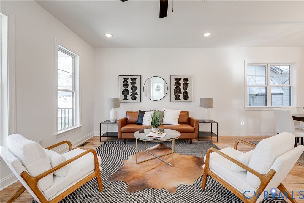 Nestled on a quiet street in Church Hill North, this thoughtfully designed home offers 1,815 SF with 3 bedrooms and 2.5 baths. Features include hardwood floors throughout, custom finishes, and a first-floor primary suite. The open-concept layout is filled with natural light and flows seamlessly from the living room into the dining area and stylish kitchen, complete with white soft-close cabinetry, Quartz countertops, stainless steel appliances, and an island with pendant lighting. The main-level primary suite includes a double vanity and walk-in shower. Upstairs offers two additional bedrooms, a full bath with tub/shower combo, and added hallway storage. Enjoy fully fenced front and rear yards, plus off-street parking"”all just minutes from parks, restaurants, and everything Church Hill has to offer.