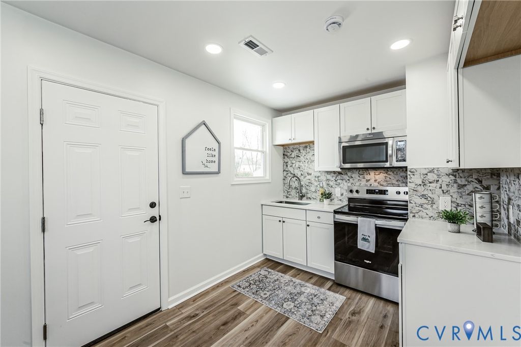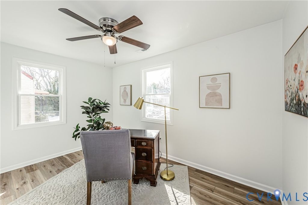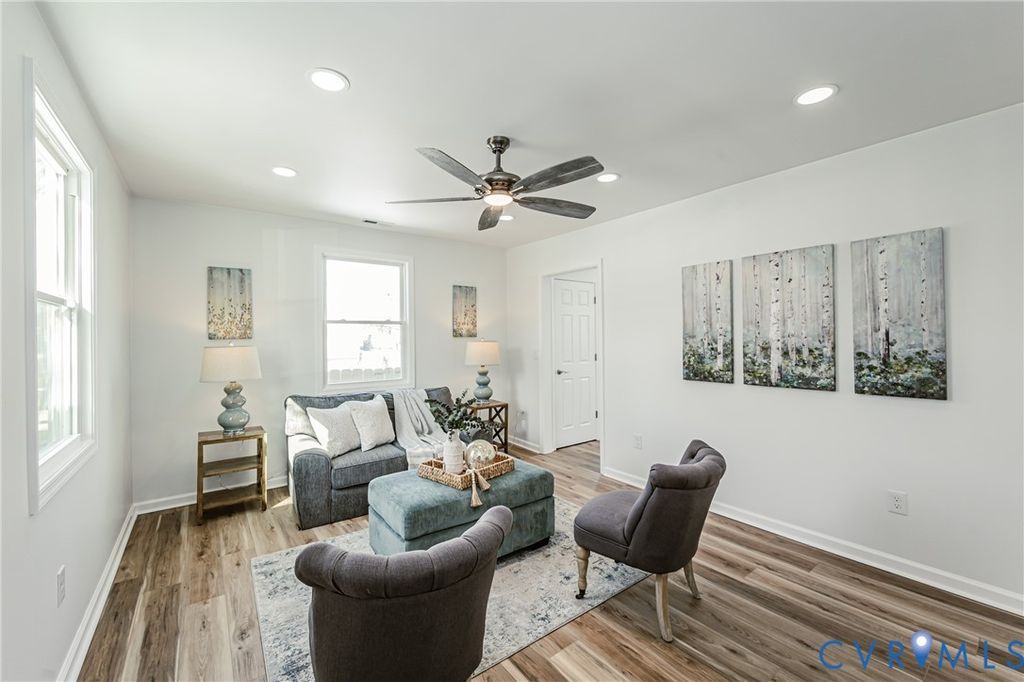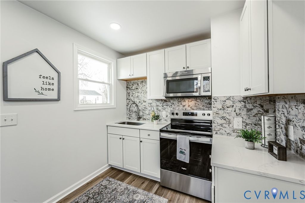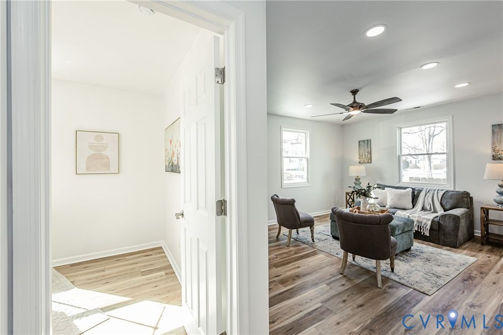 Fall in love with this beautifully reimagined 3-bedroom rancher, perfectly situated on a spacious corner lot just minutes from the vibrant heart of Downtown Richmond. Blending classic charm with a sleek, modern aesthetic, this home has been meticulously renovated from top to bottom and is move-in ready. An inviting front porch welcomes you home, the perfect spot for your morning coffee. The entire property is secured with full perimeter fencing (front and back), offering privacy and a safe haven for pets or play. Step into a bright, airy living room bathed in abundant natural light and finished with a fresh, neutral color palette that complements any decor. The heart of the home is a beautiful eat-in kitchen. It features handsome wood cabinetry, ample counter space, and polished stainless steel appliances. While the main floor offers effortless one-level living, the sizable second-floor bedroom provides a private retreat, ideal for a primary suite, a quiet home office, or a creative studio. Enjoy the peace of a residential neighborhood without sacrificing convenience. With dedicated off-street parking and quick access to the city's best dining and entertainment, you truly get the best of both worlds.
