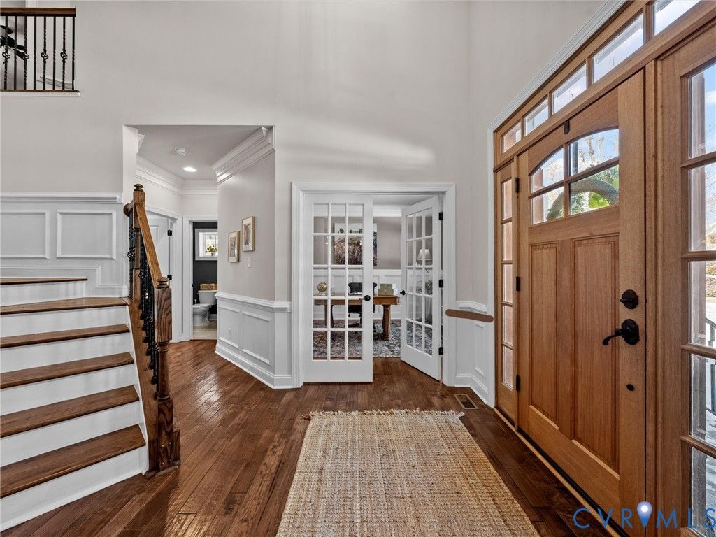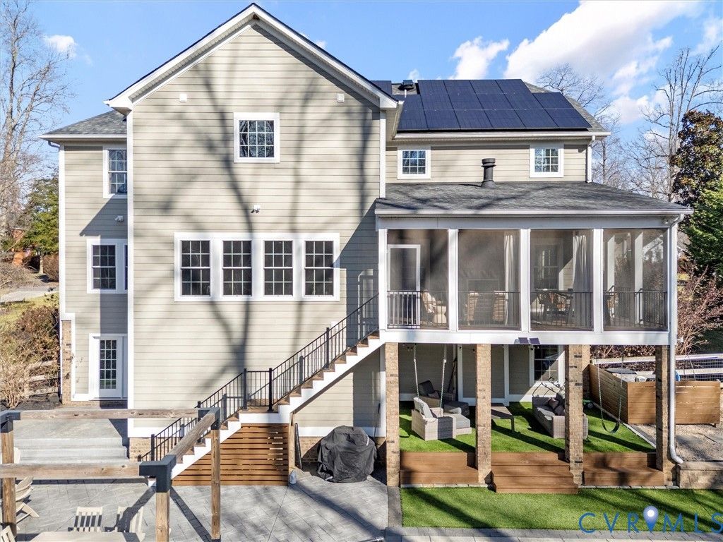 Welcome to this exceptional like-new Luxury Woodlake Residence offering space, versatility, and resort-style outdoor living! With 7 Bedrooms and 5 full Bathrooms, including a First Floor Bedroom/Bath, this thoughtfully designed home provides room for everyone while maintaining a warm, open flow ideal for both everyday living and entertaining! With over $200,000 worth of upgrades added, enter the main level showcasing an open-concept layout with a spacious modern Chef's Kitchen, Sitting Room/Bar area, Family room, and Formal Dining Space, plus a First-Floor Bedroom with Full Bath offering excellent flexibility for guests or home office needs. On the 2nd Floor, you'll find 5 additional Bedrooms, including a Luxurious Primary Suite with a well-appointed En-suite Spa Bathroom complete with His/Her Walk-in Closets, Separate Vanities, Soaking Tub and Separate Shower, and the convenience of direct access to the Laundry Room. One Secondary Bedroom is oversized and ideal as a Teen Suite, Playroom, or Bonus Space, while two Bedrooms share a Jack-and-Jill Bathroom, creating both functionality and privacy. The finished Walk-out Basement is an entertainer's dream featuring a Media Room with Stadium Seating, expansive Recreation Room with Bar area, Bedroom w/ Walk-in Closet, and Full Bathroom, perfect for guests, multi-generational living, or an in-law suite. Basement also includes a utility room for lots of storage space. Step outside to your private backyard oasis featuring a heated and cooled Salt Water Swimming Pool with automatic cover, Paver Patio/Pergola Lounge area, and Fully Fenced Backyard"”perfect for year-round enjoyment and entertaining. The 3-car Garage is oversized with an extended cab and Epoxy flooring. Solar panels help offset utility costs, adding efficiency to luxury. Just a short walk to Woodlake Pool, Clover Hill Elementary, Bike Paths, Swift Creek Reservoir, Extensive Community Amenities, Convenient Shopping, Restaurants and Blue Ribbon Award-Winning Schools, this home has it all!